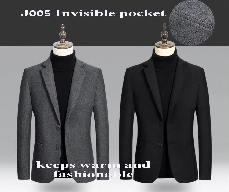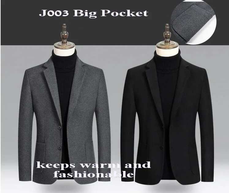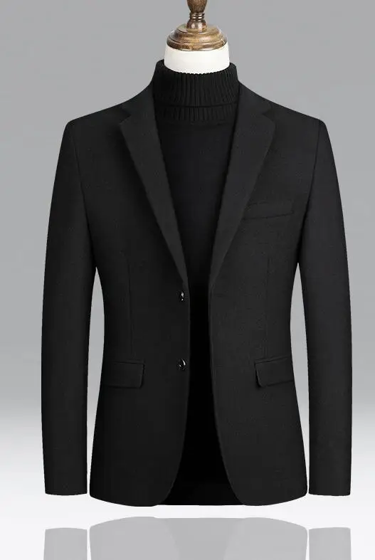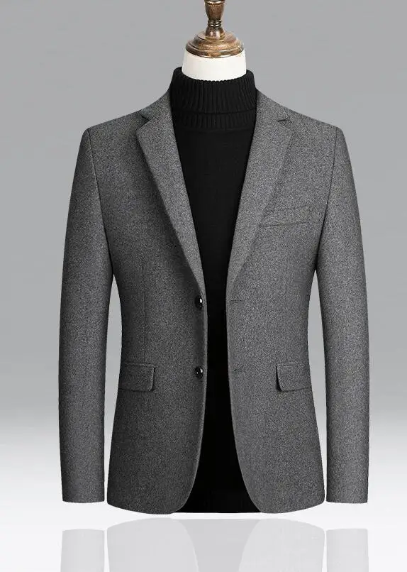 Блейзер Мужской из смесовой шерсти, утепленный пиджак, куртка, деловой повседневный, стандартные блейзеры с тремя карманами, украшение