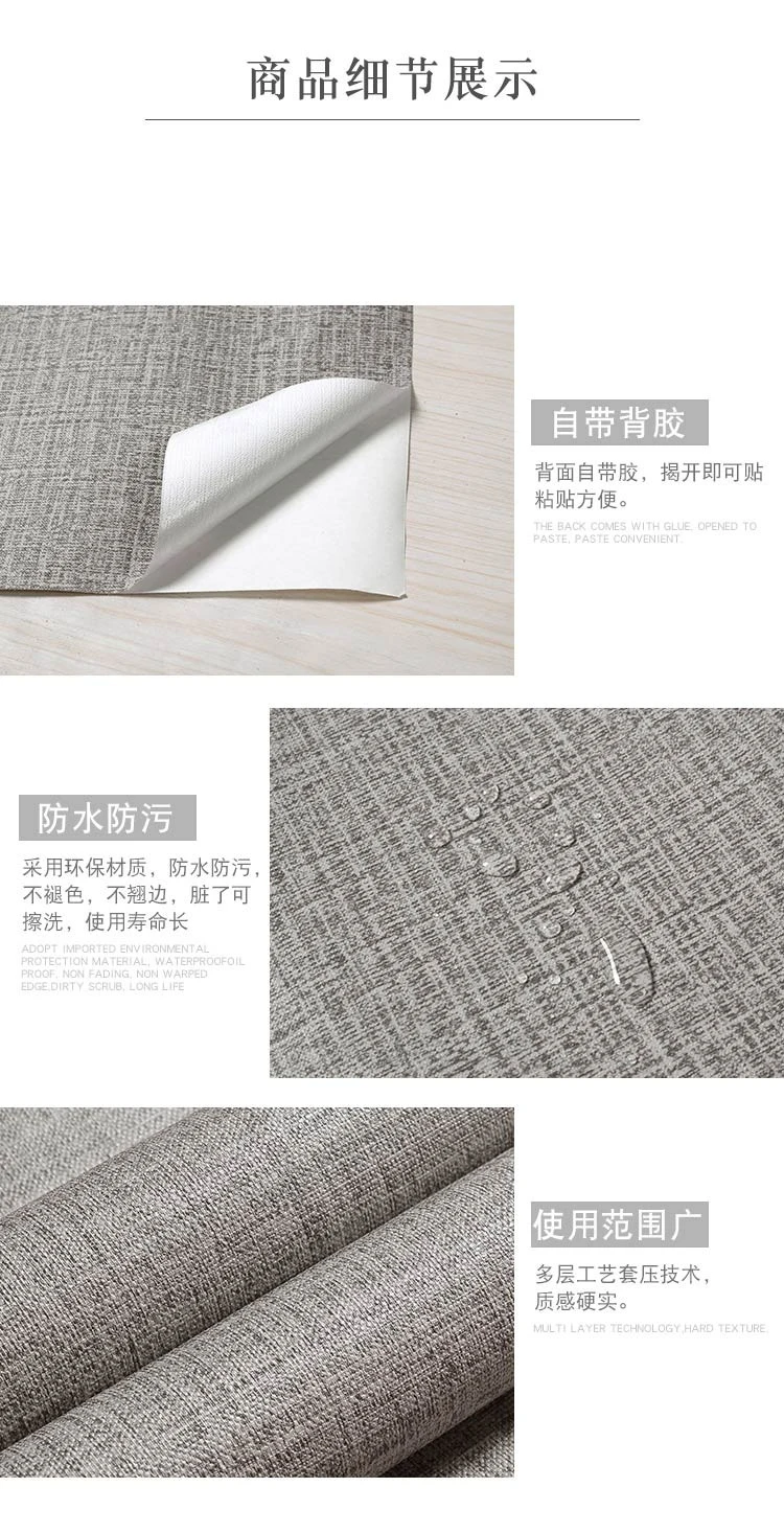 Самоклеящиеся однотонные обои, Современная Текстура льна, ПВХ, водо...