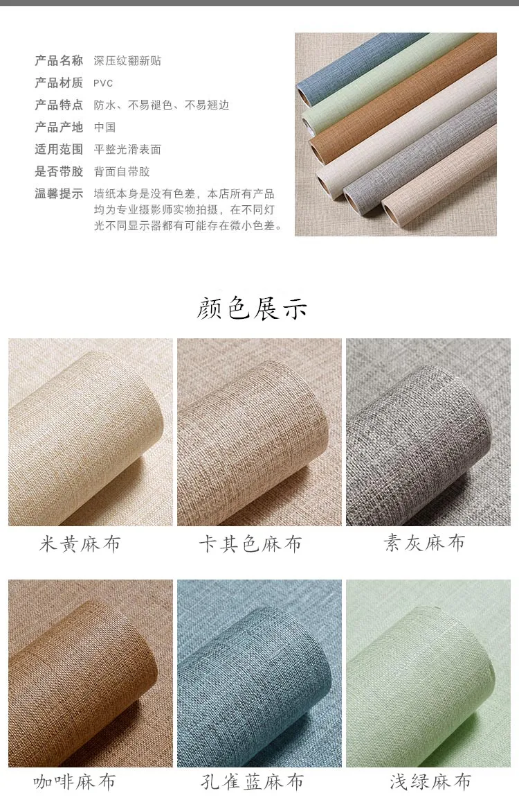 WOKHOME Лен ПВХ самоклеящаяся настенная бумага s для спальни гостин...