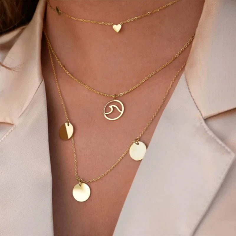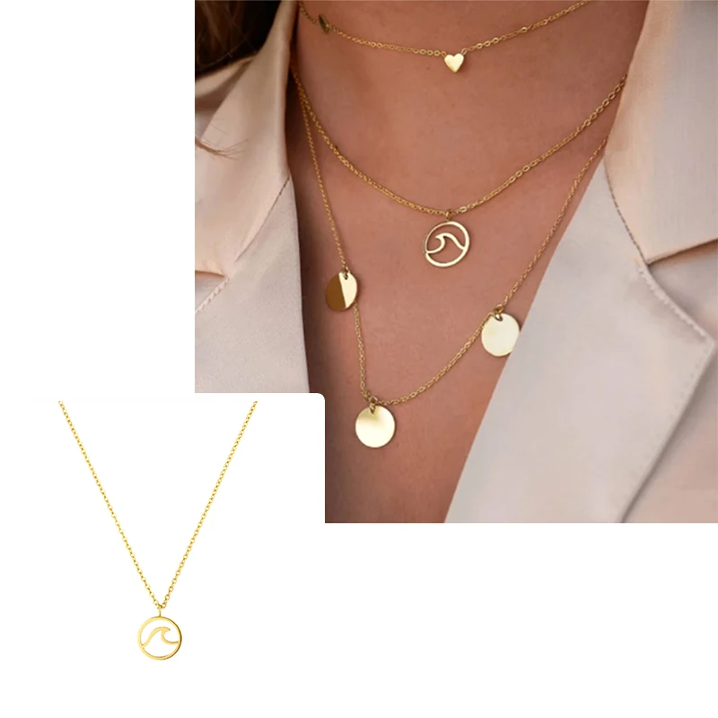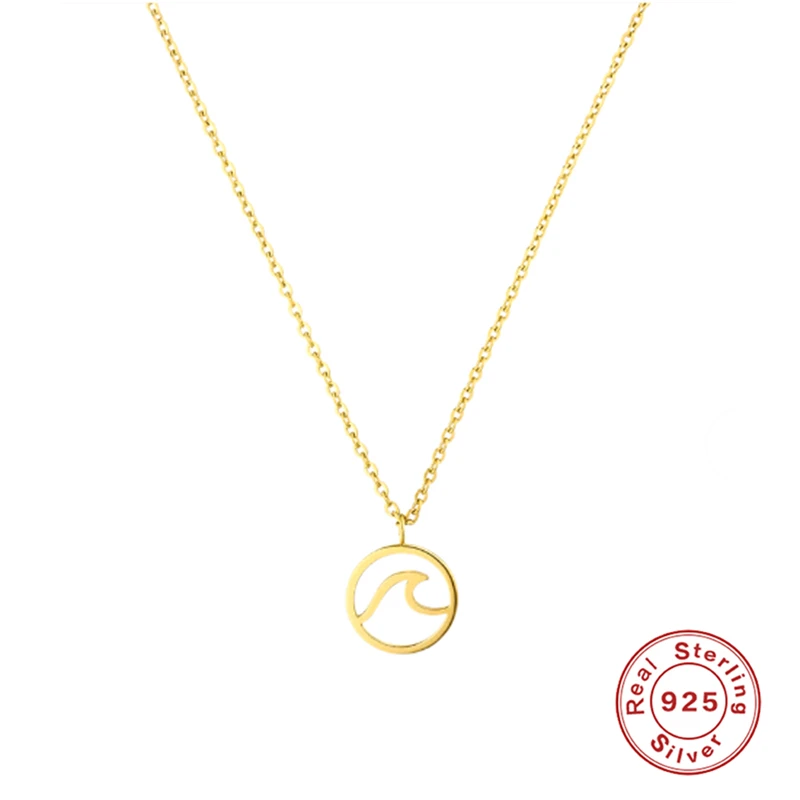 Женское ожерелье из серебра 925 пробы, кулон с волной, ожерелье в богемном стиле с монетой морского серфера, ожерелье с монетой подвеска в виде волн