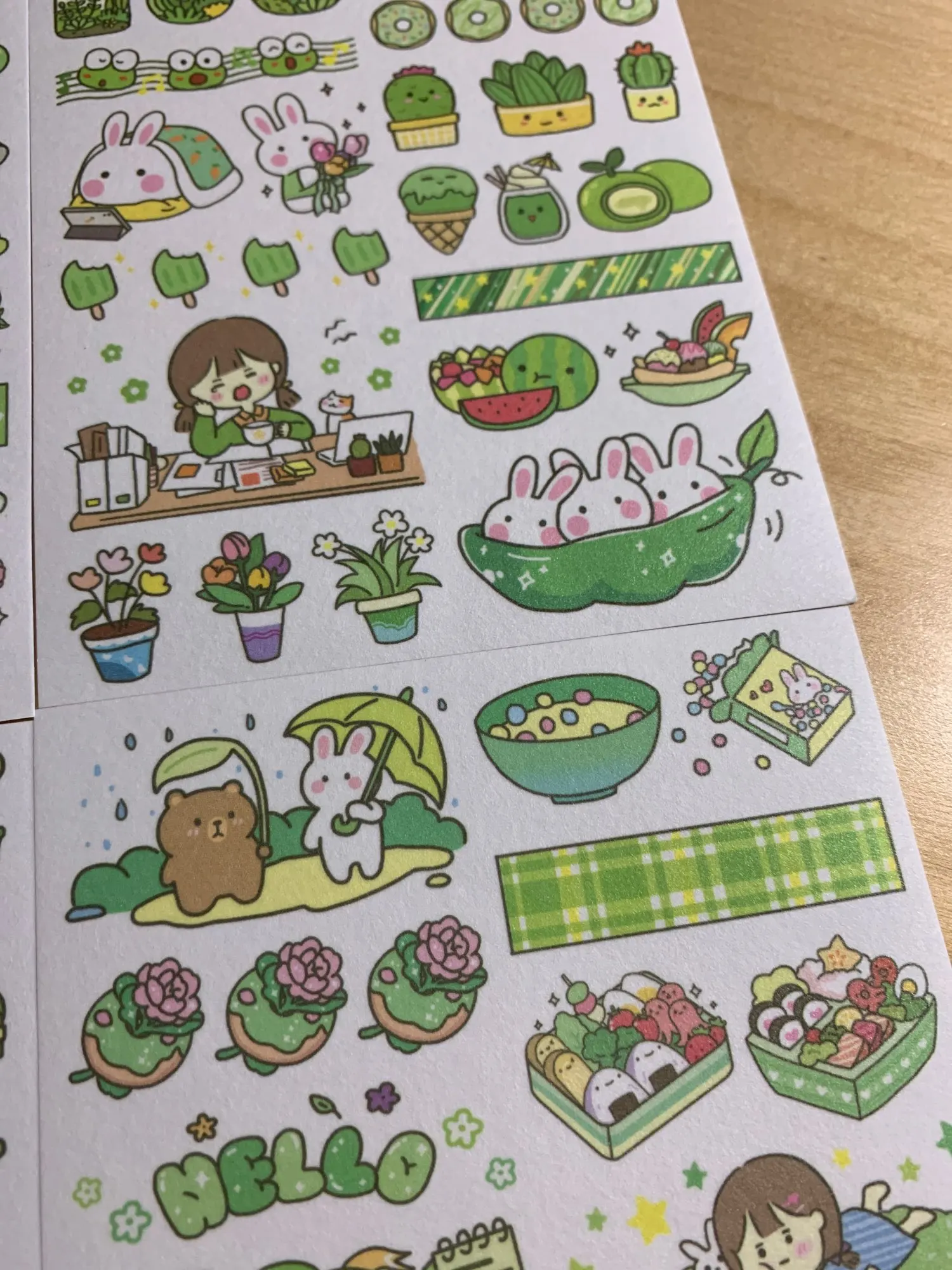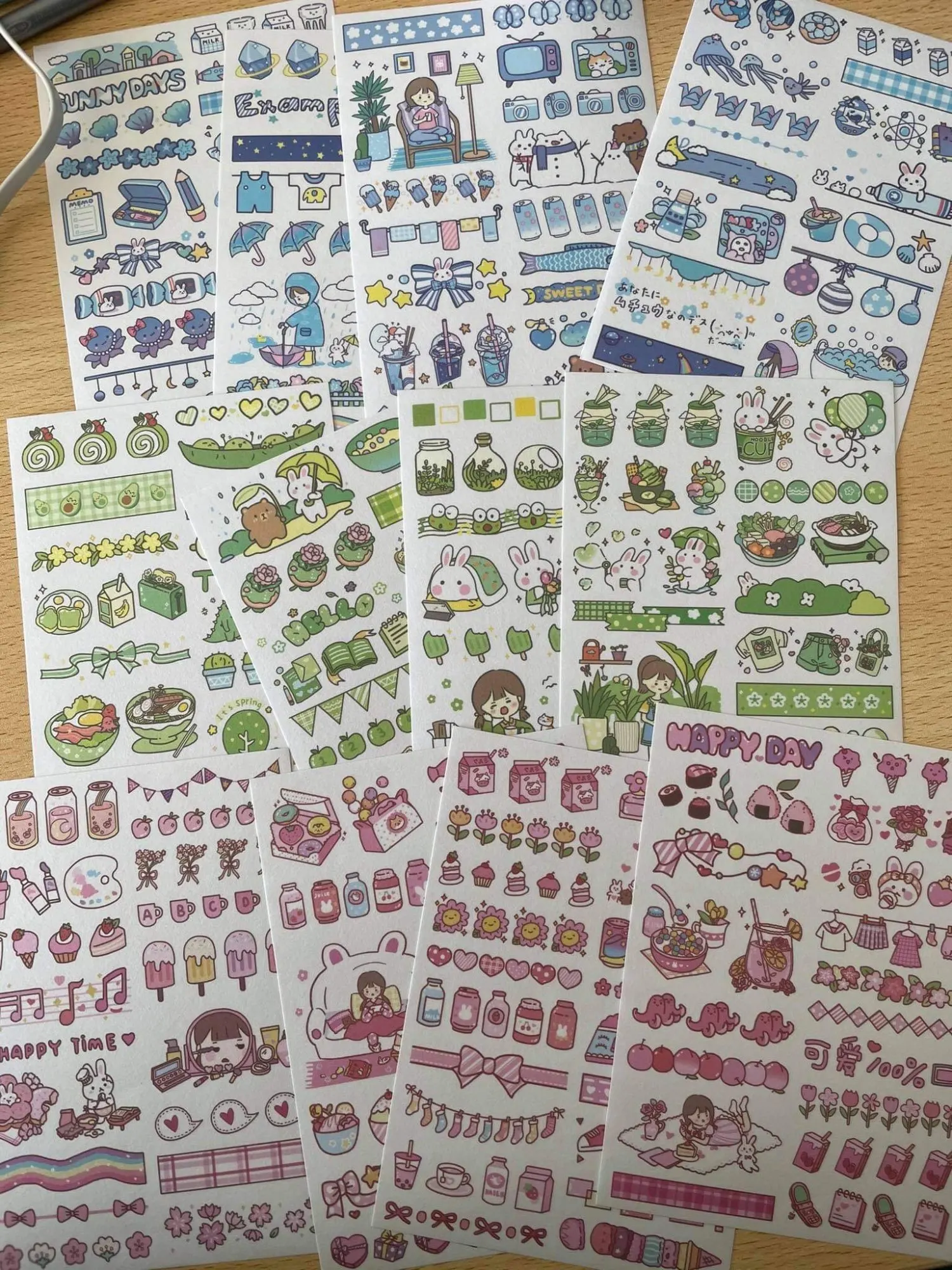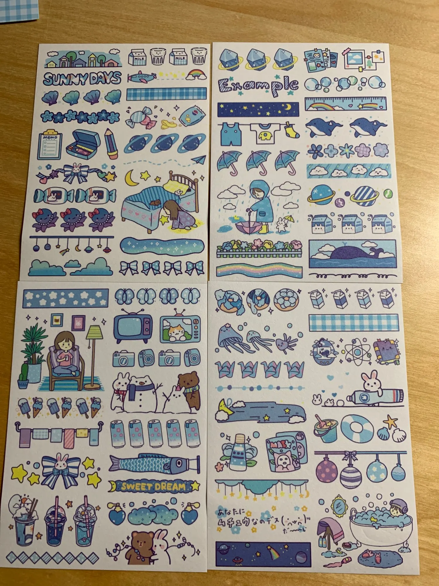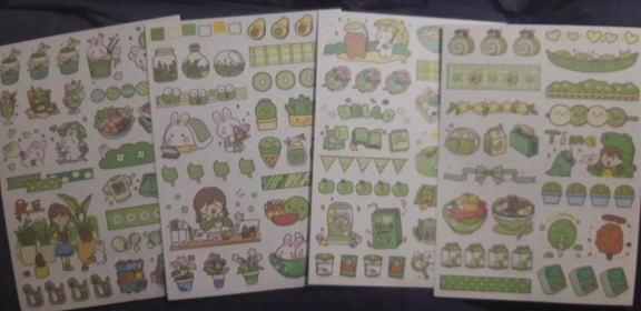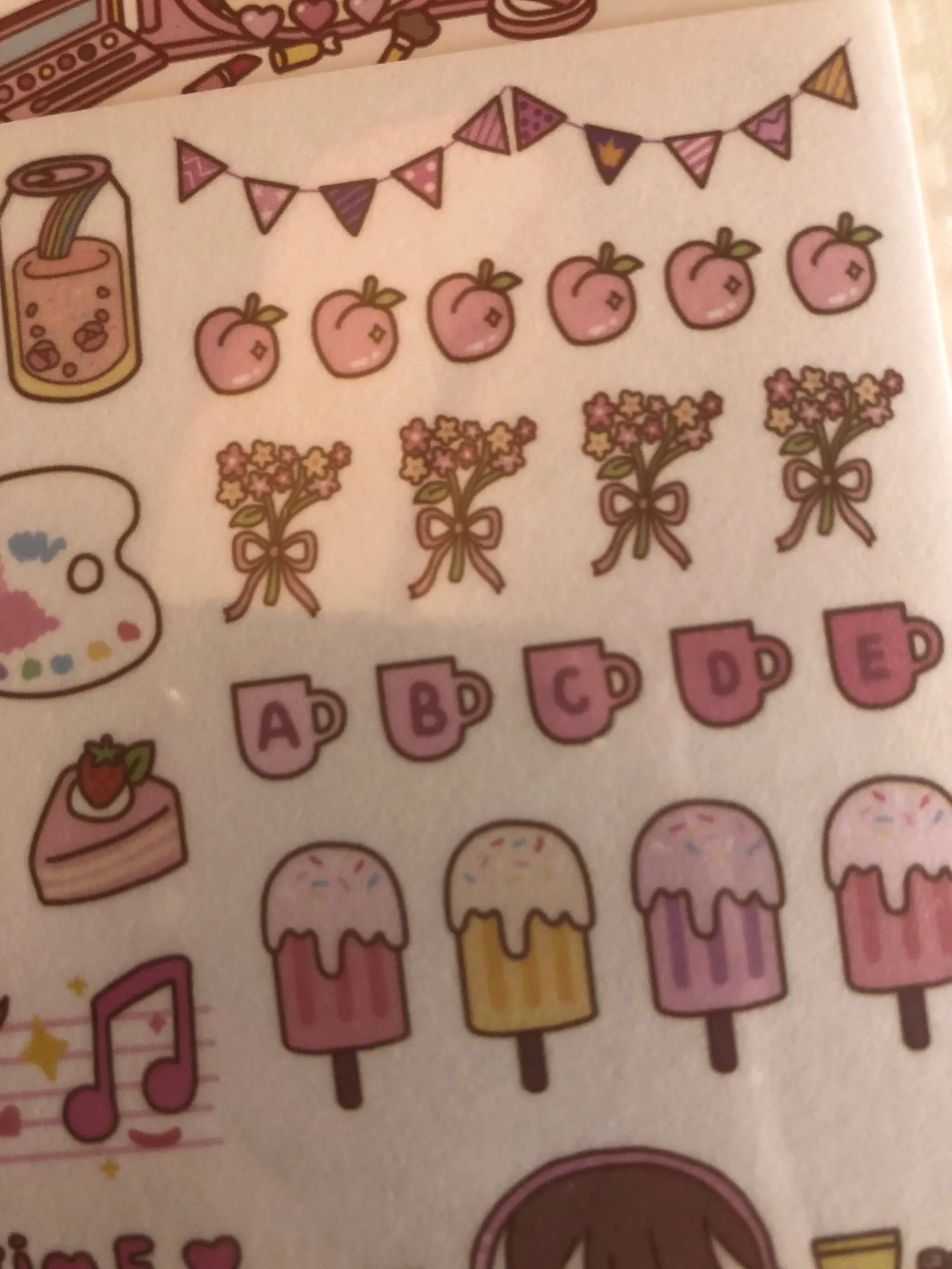 Everything came as listed but they are stickers you have to cut yourself so be mindful of that. But unlike other stickers similar to this, there is a lot of space to neatly cut them how you please. The texture of it kind of feels like sketchbook paper so it’s really nice. The stickers are a bit transparent though not really pure white. In my photos I had cut them to show how they look like individually.