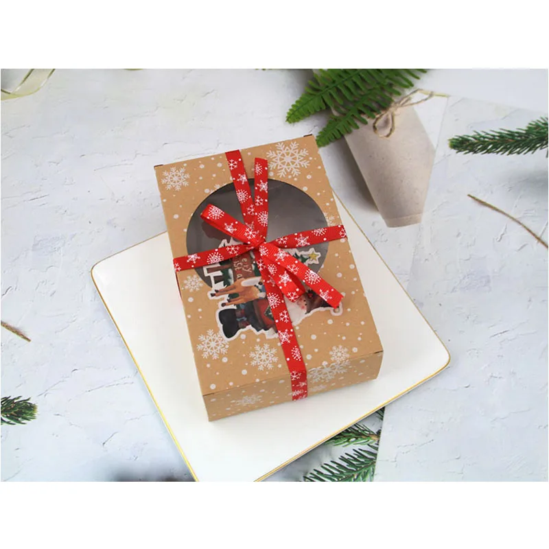 12 шт. рождественские подарочные коробки для печенья, новогодние коробки для сувениров с прозрачным окном, коробки из крафт-бумаги, коробки для конфет, Художественная упаковка, Прямая поставка