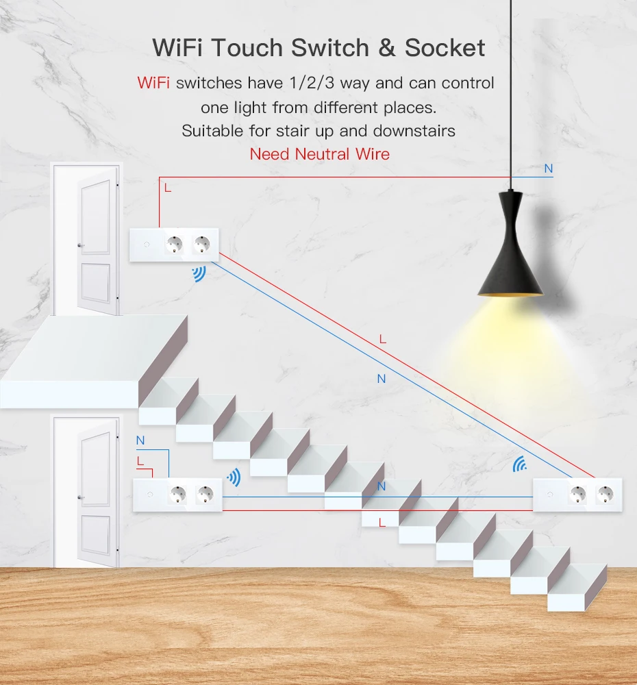 Мульти-Управление Ассоциации: переключатели wifi отличается от предыдущего на 1/2/3/4way и может Управление один светильник из четырех разных местах (не может превышать 4 пути).