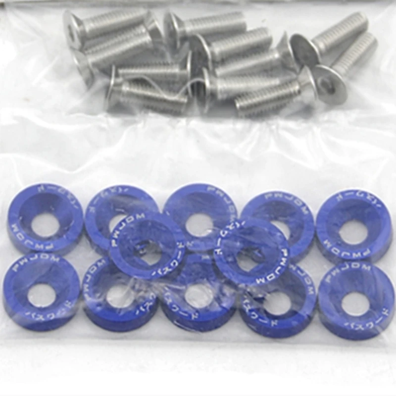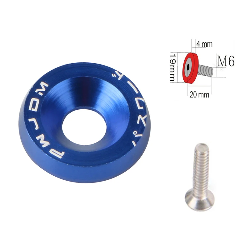 10 шт., синие алюминиевые шайбы JDM для крыльев и болтов M6, модифицированные шестигранные крепежные детали шайбы для крыльев, бампера, двигателя, вогнутые винты