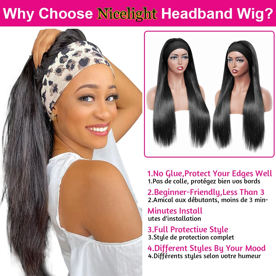 Nicelight бразильские прямые волосы парик с головной повязкой синтетические парики из натуральных волос для афроамериканцев Для женщин доступная начинающих дружелюбное