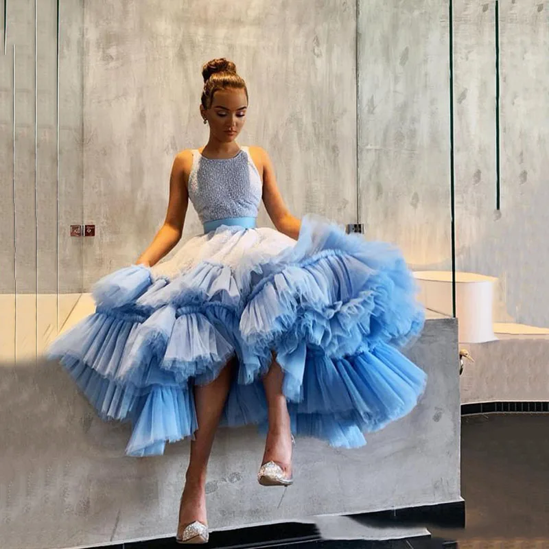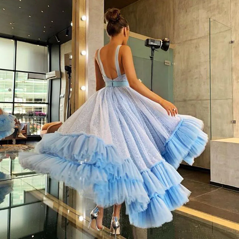 Пыльное синее низкое платье для выпускного вечера, 2020 слоев, очен...