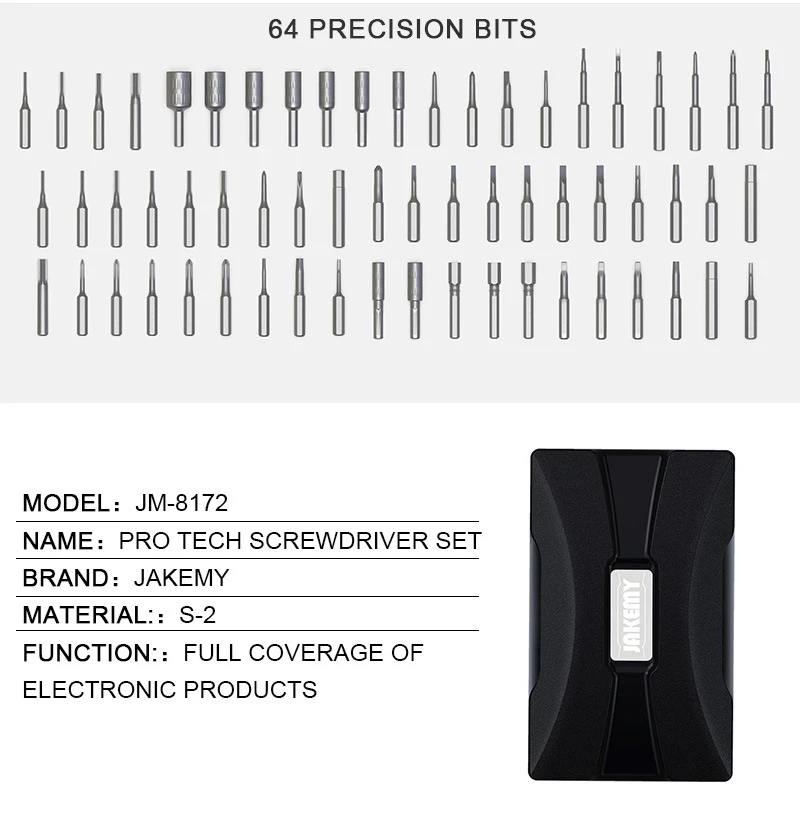 64 прецизионные Биты Модель: JM-8172 Название: Набор отверток PRO TECH Бренд: JAKEMY Материал: S-2 Функция: полное покрытие электронных продуктов