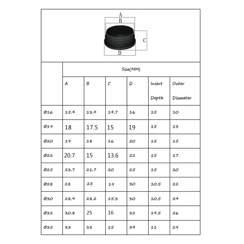 Особенности:OOTDTYРебристый для легкой сборки и надежного крепленияОтлично подходит для покрытия острых кромок трубИдеально подходит для того, чтобы сделать концы безопасными после строительстваДля сохранения воды и ОСТАНОВКИ ржавчины изнутриПреимущества использования пластмассовых трубных вкладышей включают в себя:Предлагает аккуратную и безопасную отделку к концам трубВставки трубки могут предотвратить попадание грязи и пылиНажмите в приложении для плотного прилегания.Материал:Эти черные концы изготовлены из прочного пластикаИ встроенный в несколько ребер для легкой установки и надежной фиксацииДиаметр: 16 мм, 19 мм, 20 мм, 22 мм, 25 мм, 28 мм, 30 мм, 32 мм, 35 ммНесколько наружных диаметров:1/2 дюйма, 3/4 дюйма, 1 дюйм, 1-1/4 дюйма, 1-1/2 дюйма, 2 дюйма; Разные размеры обеспечивают более широкое применениеКоличество: 10 штук каждого размера, достаточно, чтобы удовлетворить ваши различные требования в повседневной жизниНапоминание:Выбор размеров этих пластиковых вилок определяетсяНаружный диаметр того, что вы хотите вставить Посылка включает в себя:10 x круглые пластиковые торцевые вставные вилки