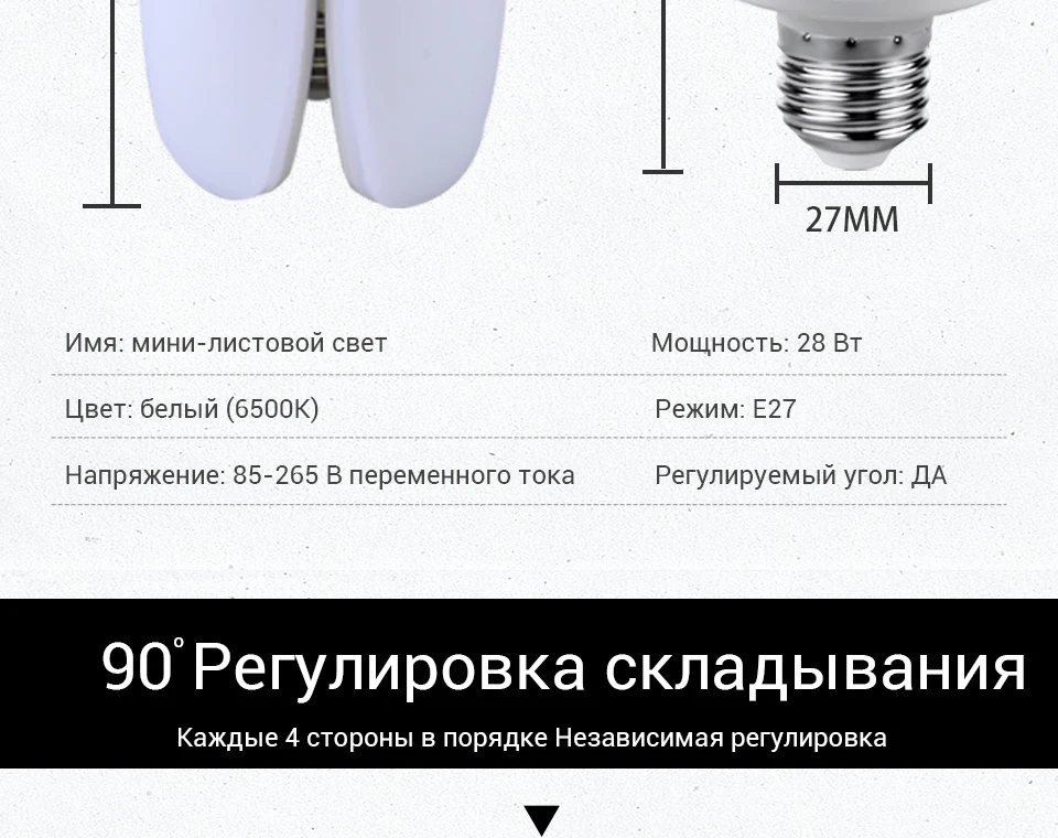 Лампа с светодиодный ционным управлением, светодиодсветильник лампа E27 28 Вт, естественный белый, высокая яркость, складная Светодиодная лампа AC85-265V с функцией синхронизации, для дома