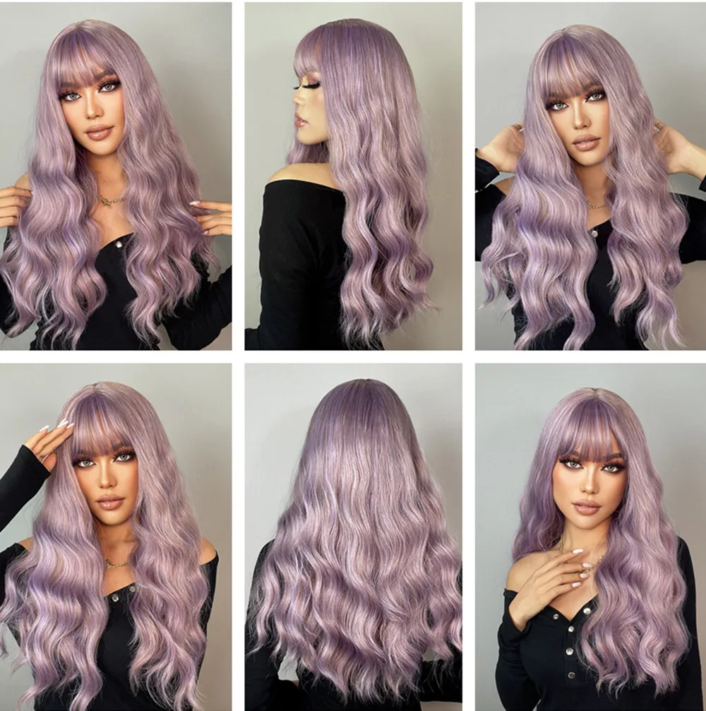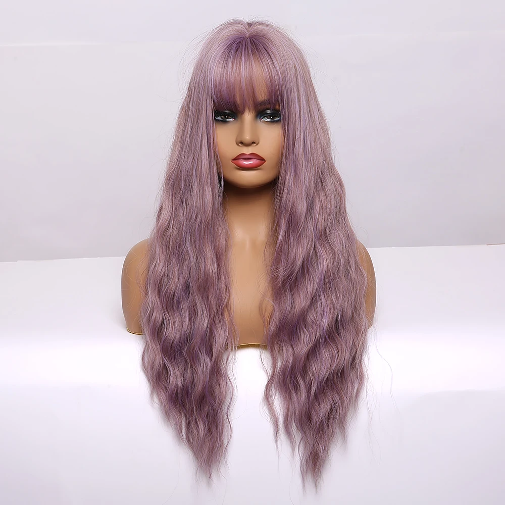 Парики для косплея, длинные, фиолетовые, смешанные, с челкой