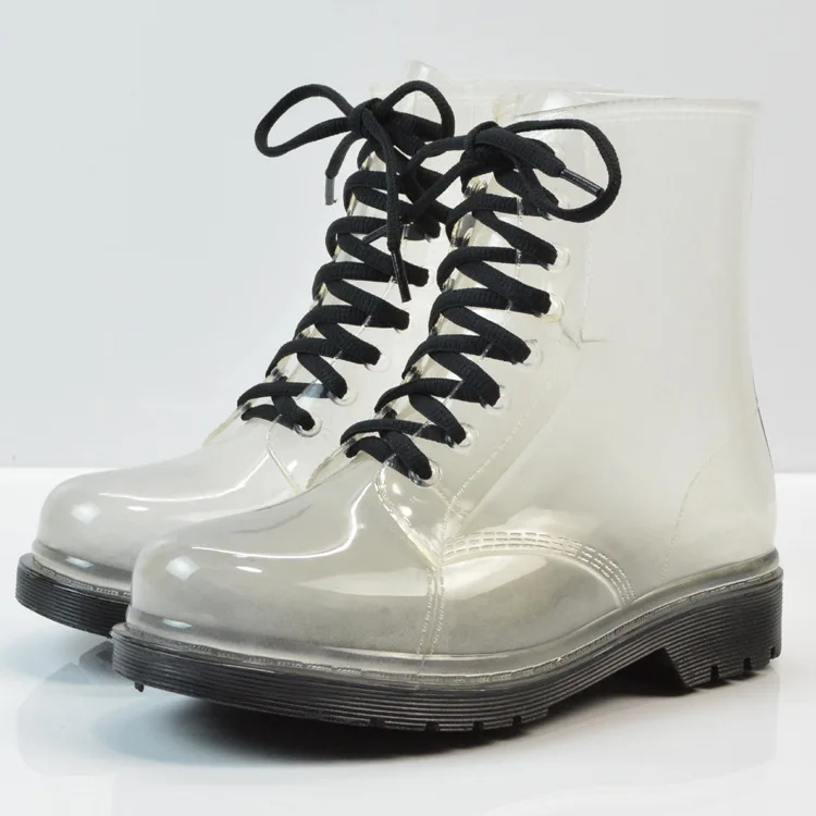 Ботильоны на платформе со шнуровкой из ПУ кожи, прозрачные водонепр...