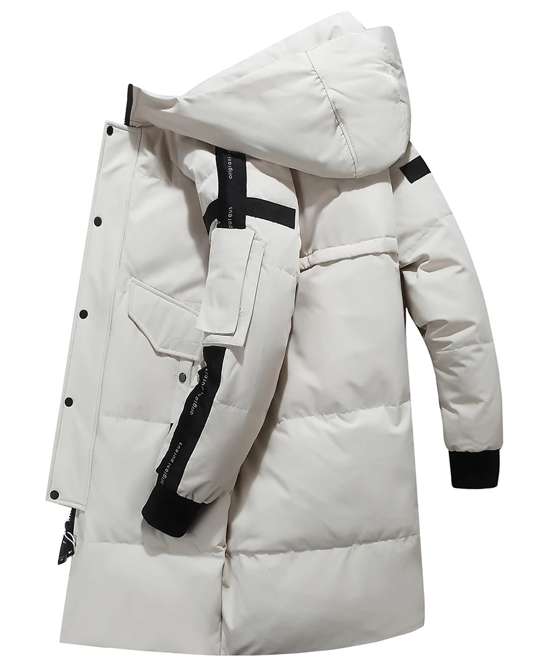Мужской длинный пуховик с капюшоном, утепленный пуховик с защитой о...