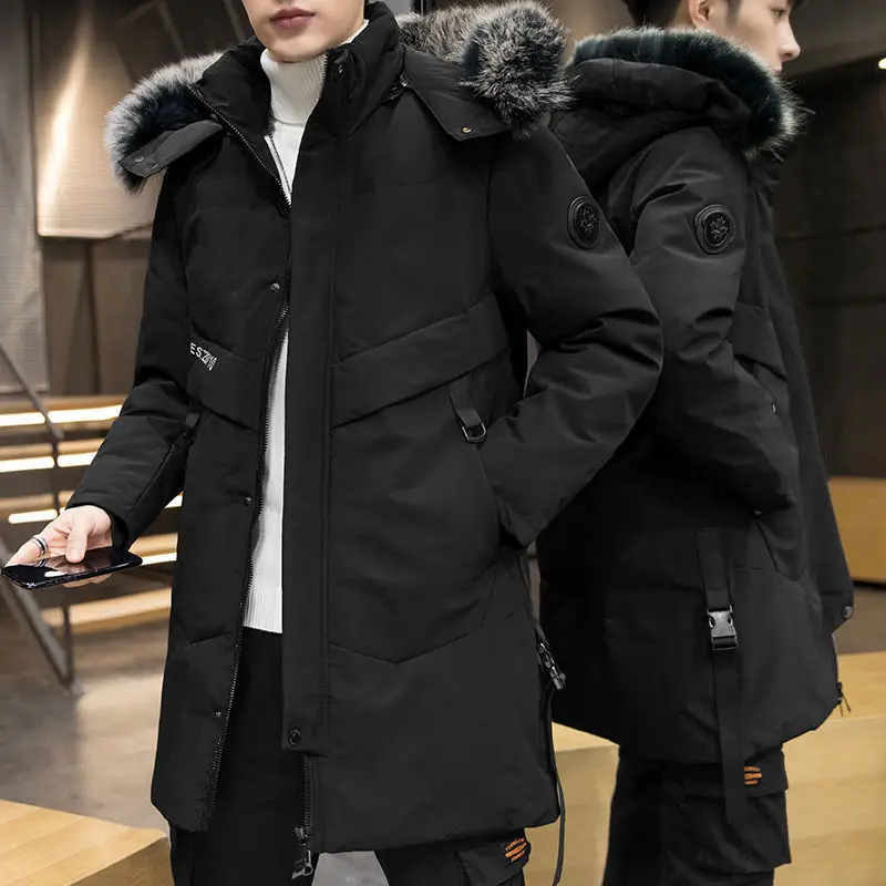 Мужской пуховик средней длины, толстая мужская куртка на утином пух...