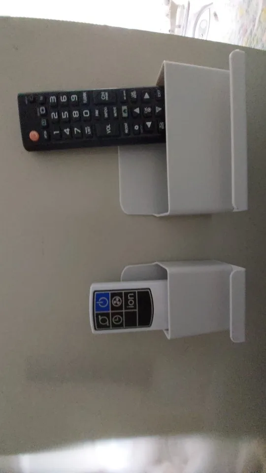 Hace muy bien su función. Se pueden colocar dos mandos de TV, sin problemas. En mi caso coloqué el del SAT +TV y entran holgadamente. Tiene también para colocar un teléfono, el mío es grande y se apoya sin problemas. Eso sí, yo le coloqué un tornillo sujetado a la pared, con el pegamento que trae no sé si aguantaría el peso.