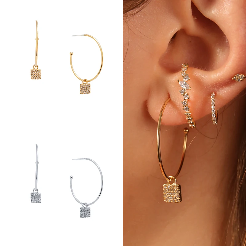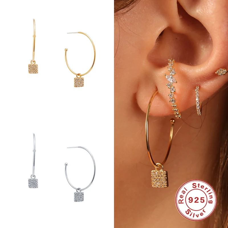 100% 925 Стерлинговое Серебро Золото C Форма Хооп Серьги с цирконием, замок подвеска талисман амулеты для женщин с украшением в виде кристаллов Роскошные ювелирные изделия