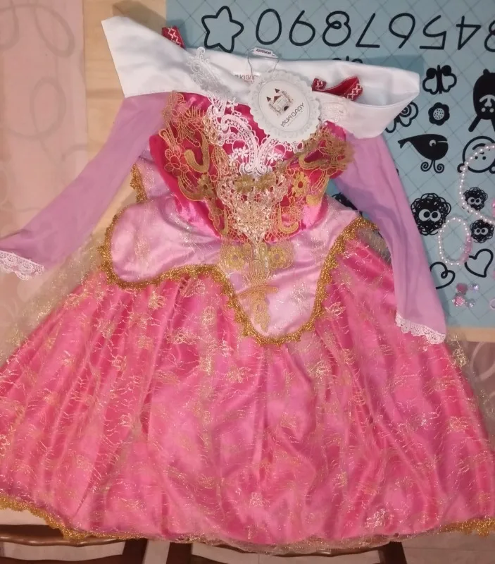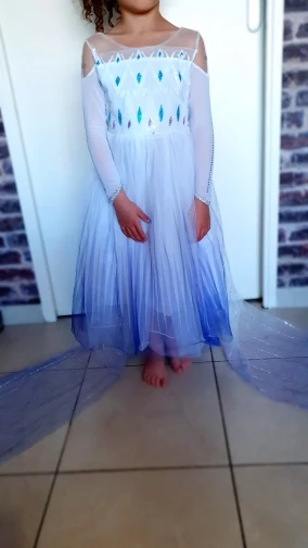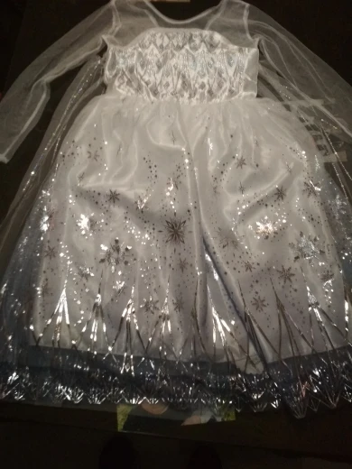 Очень красивое платье и прибыл быстро. Я поставил размеры 5/6 размера, который ставит 1,30 см. У него есть молния сзади, и она хорошо сшита. Он поставляется в красивой сумке с закрытием. И в подарок несколько мини-наклеек. Очень рад, что рекомендую.