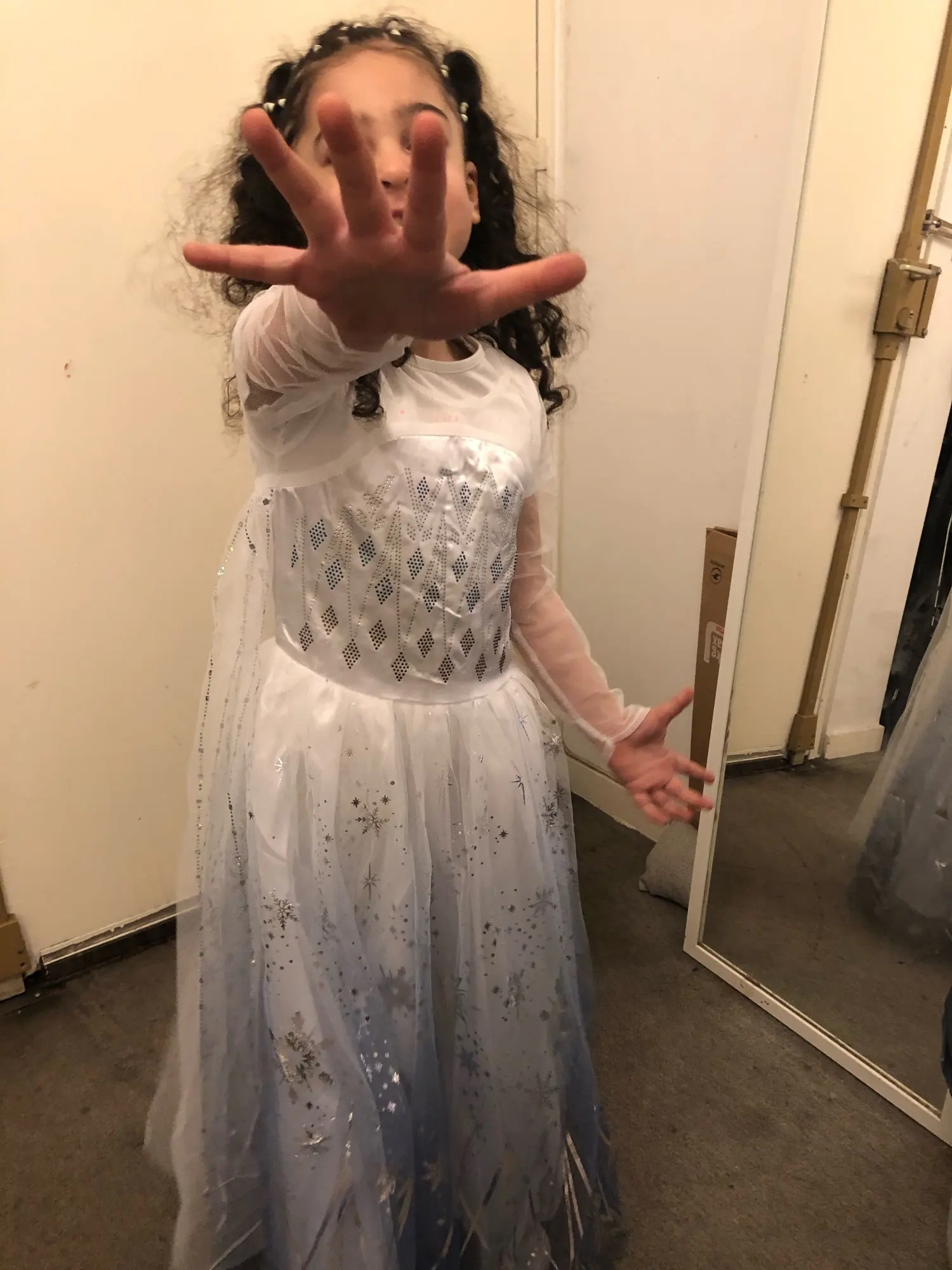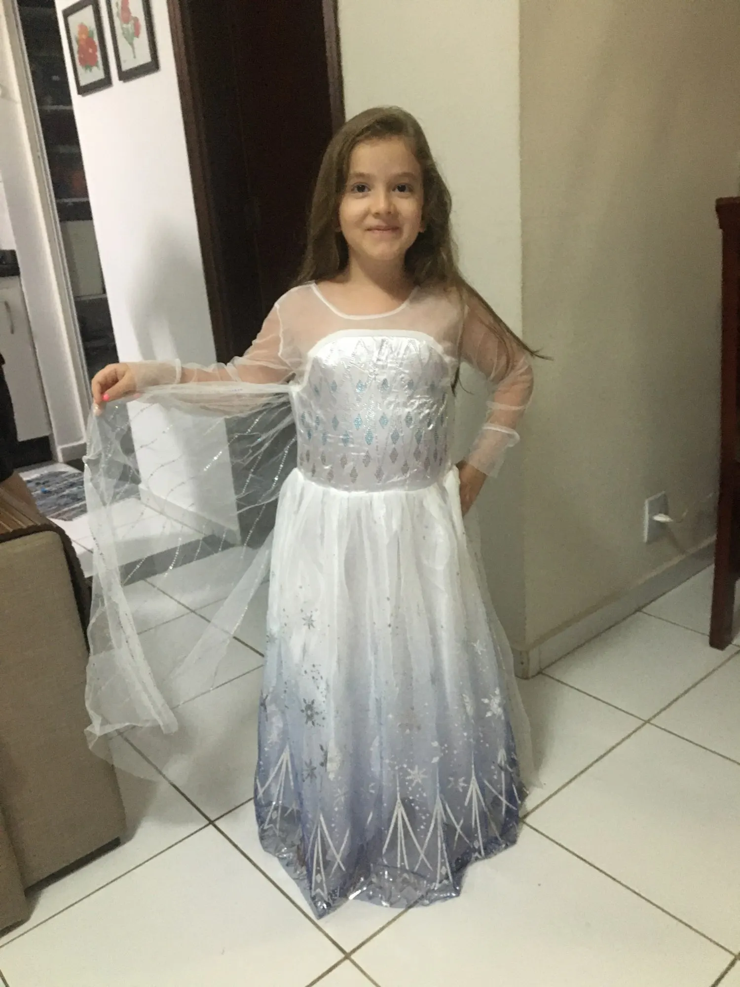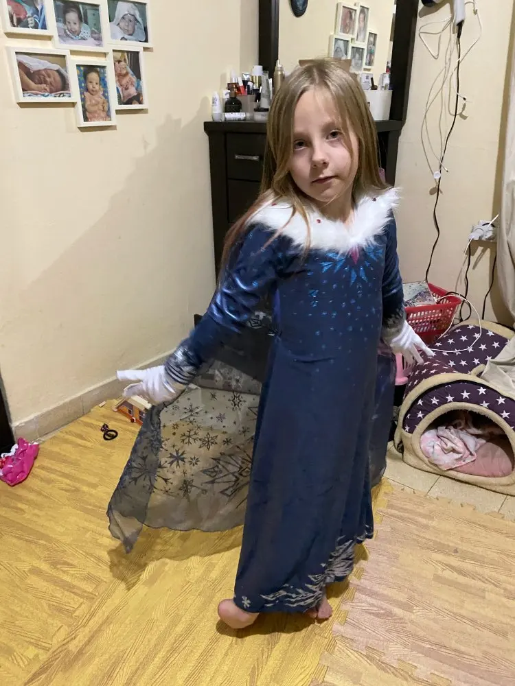 Это красивое платье, размер очень хороший, моя дочь измеряет 1 '22 м, и она идеально подходит даже немного длиннее, идеально подходит для следующего года