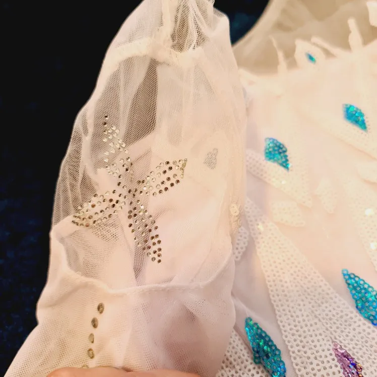 Платье принцессы Эльзы, Снежной Королевы Холодное сердце, белое Сетчатое платье с длинным рукавом для девочек, Детский костюм для вечевечерние на Хэллоуин, Осень-зима