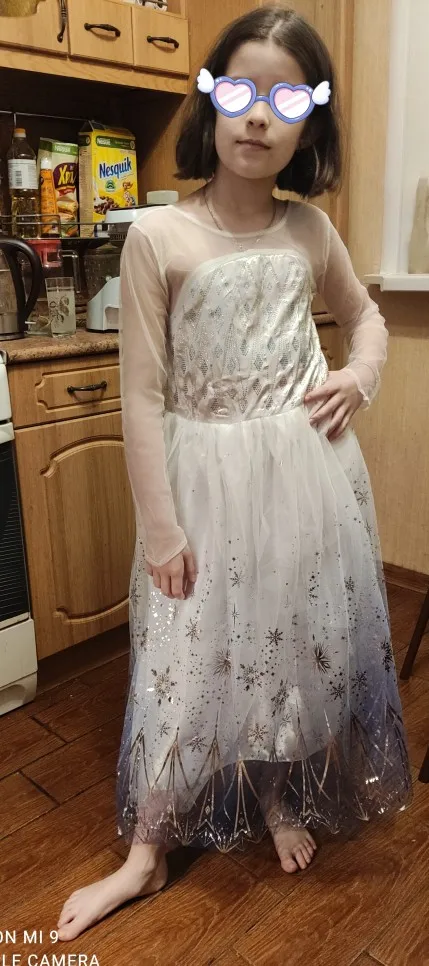 Очень-очень красивое платье, качество очень хорошее. В прошлом годузаказывали другое платье Эльзы, так это гораздо качественнее. Ребенок от него в восторге. На 125 см заказали размер 8 (140), отлично подошло, есть запас (широкое, но большим не смотрится, зато длинное).заказала 10.12, пришло 03.12, немного не успела к Новому году, но не страшно, доставка в постомат Халвы.