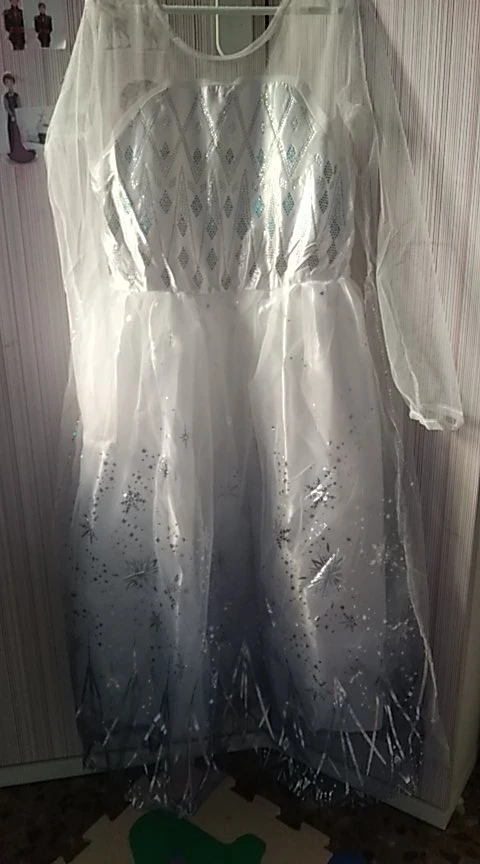 Платье красивое, это моя лучшая покупка для allieexpress, будущее хорошо упаковано, есть накидка dopinana на пуговицах сзади, размер с бирками 140 A слишком большой размер для женщин; Размер 128 будет длиннее :) рекомендуем очень тепло