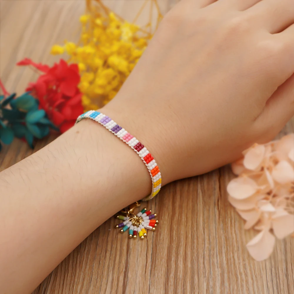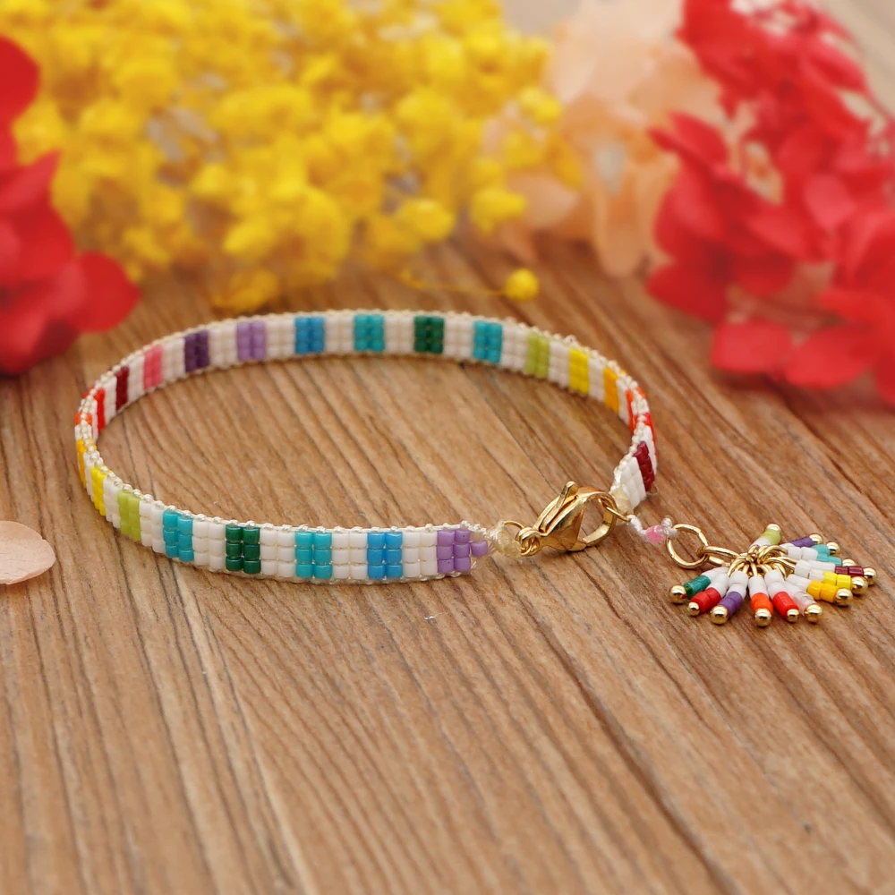 Go2boho Радужный Браслет с бусинами для девочек, ювелирные изделия ручной работы, японские бусинки, богемные цветные украшения, браслеты Miyuki