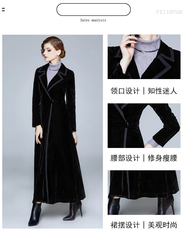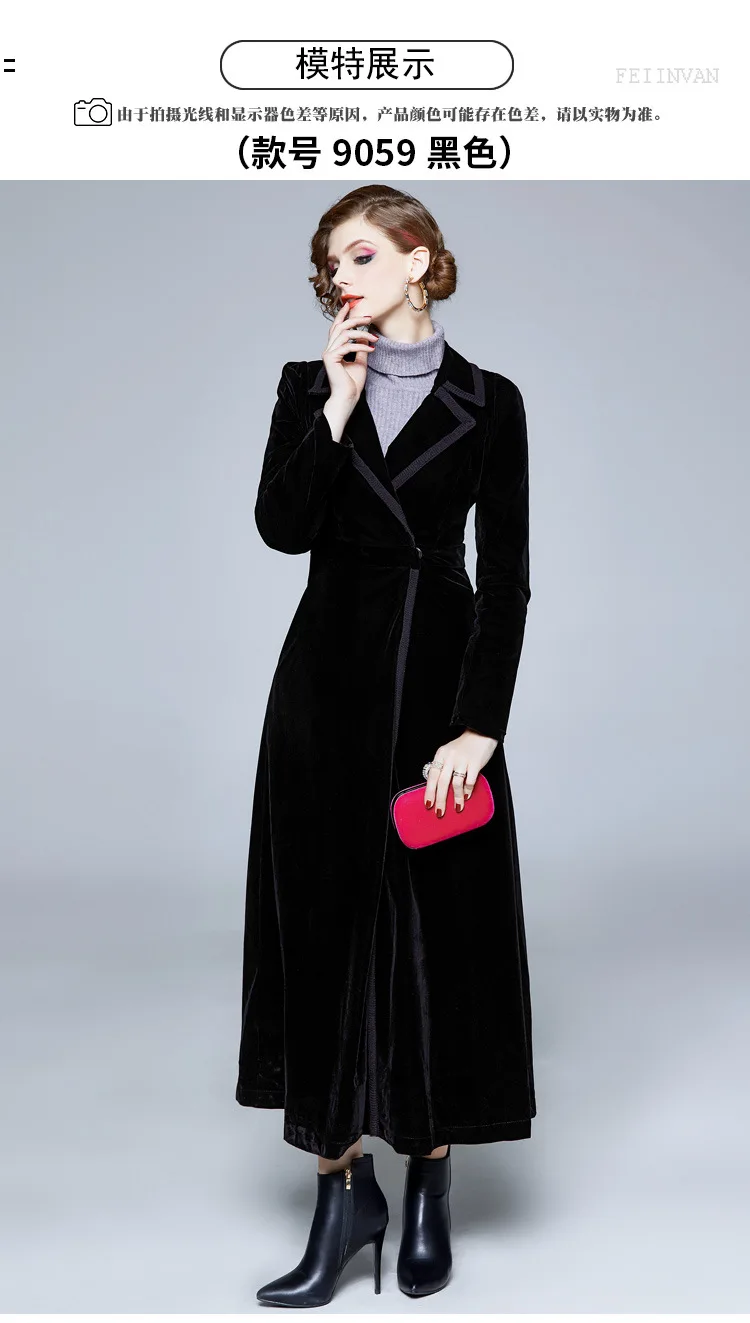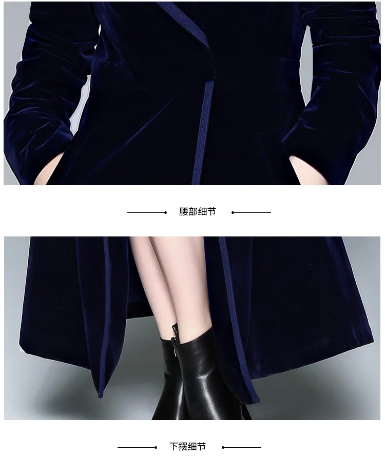 Женский длинный бархатный тренчкот, винтажный дизайнерский элегантный Длинный блейзер, верхняя одежда для осени и зимы