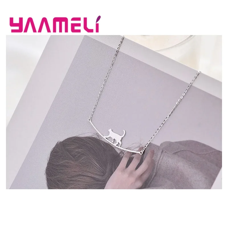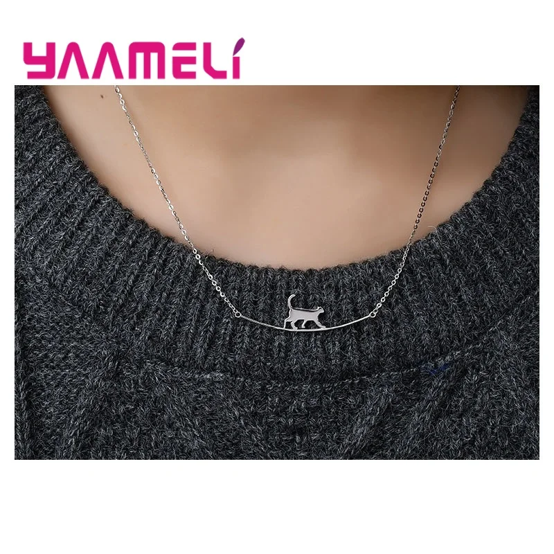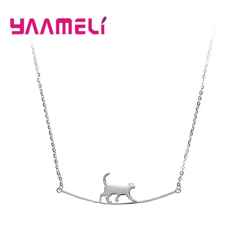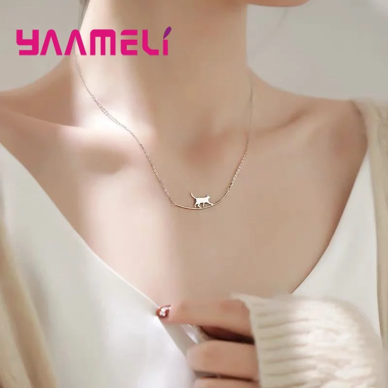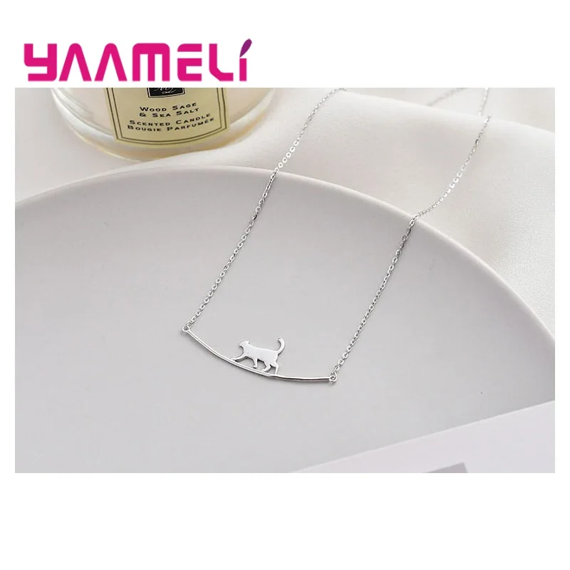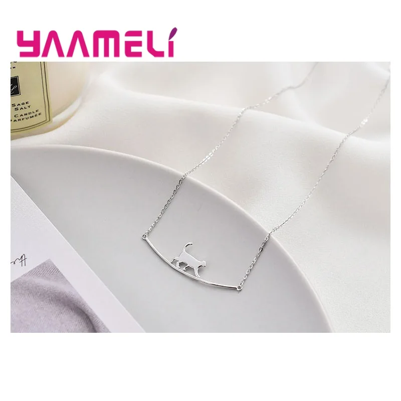 Приятный рождественский подарок для девочек стерлингового серебра 925 Rolo цепи подвеской в виде кота со стразами аксессуары для вечеринки по случаю Дня Рождения украшения