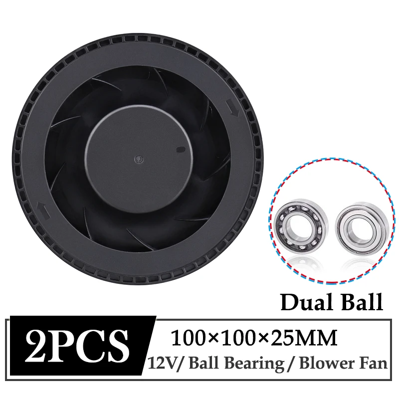 2 шт. 100x100x25Двойные вентиляторы шаровая воздуходувка мм 12 ВВозможно изготовление по индивидуальному заказу, если вам нужен другой размер, пожалуйста, свяжитесь с нами или проверьте в магазине. Спасибо.