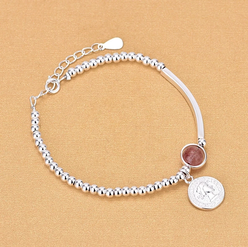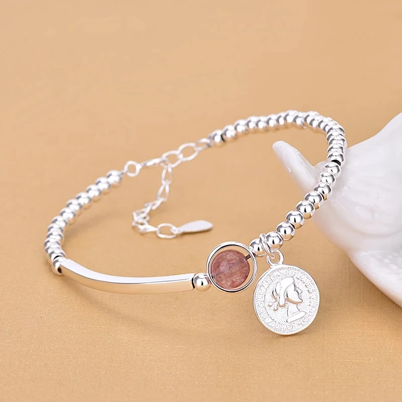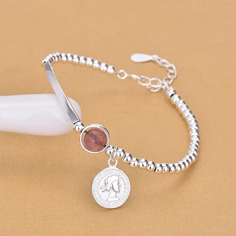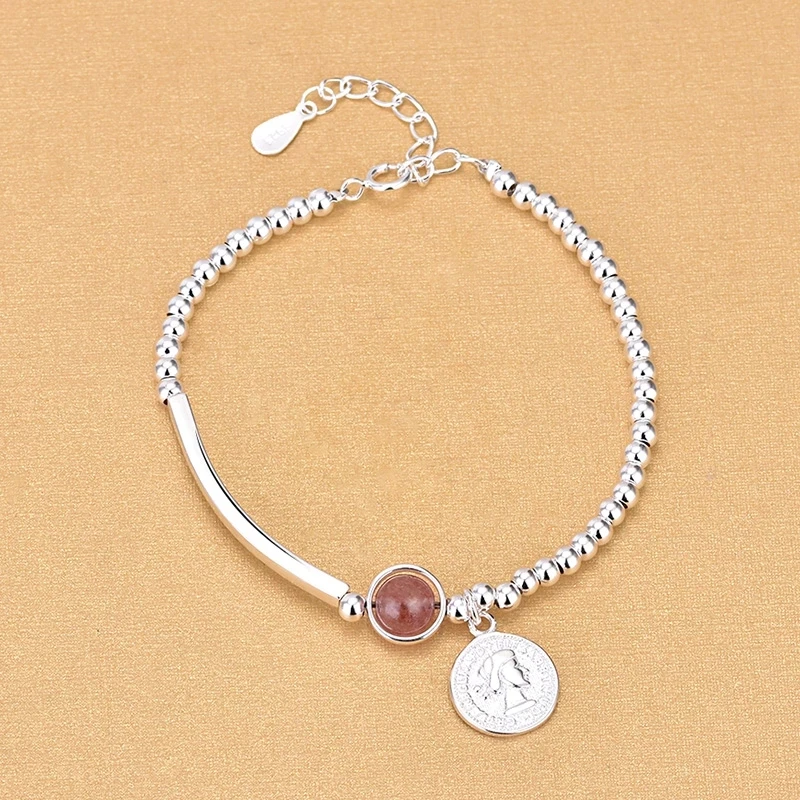 Браслет женский из серебра 925 пробы, с круглыми бусинами в виде клубники, SL112