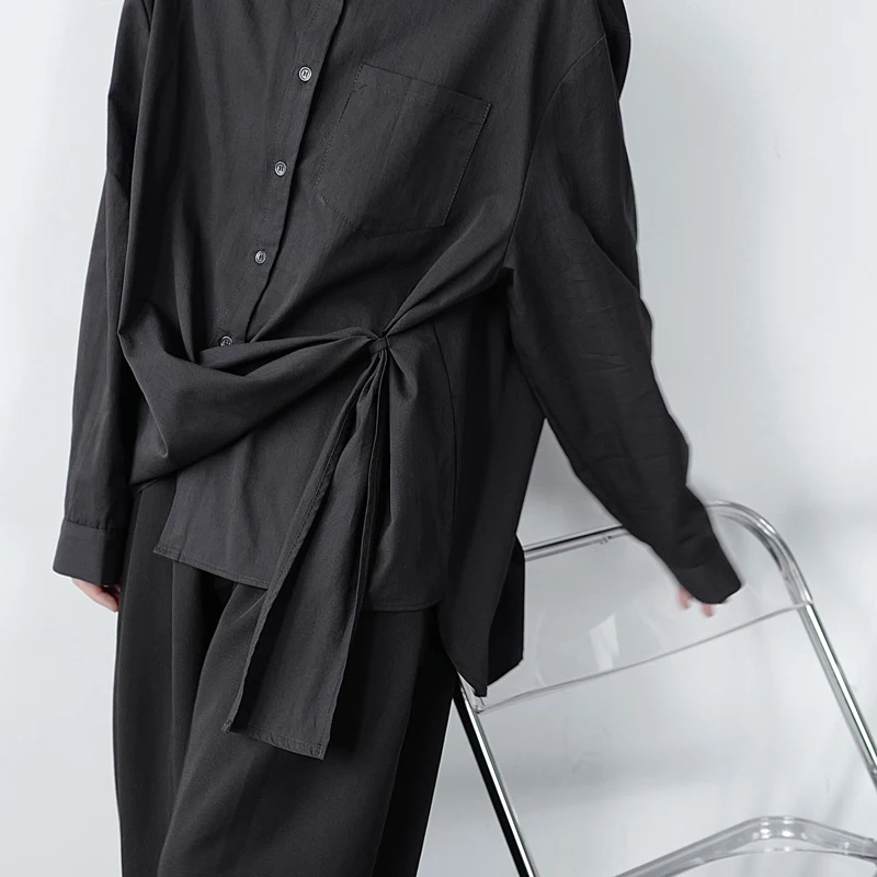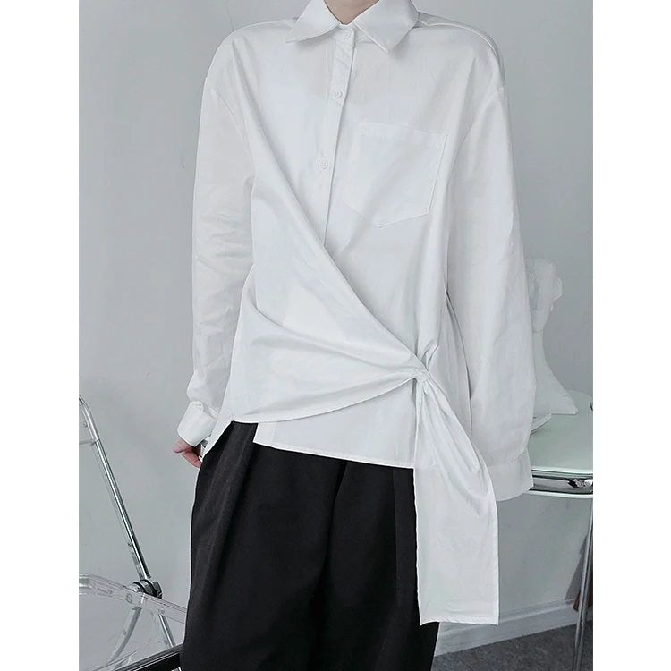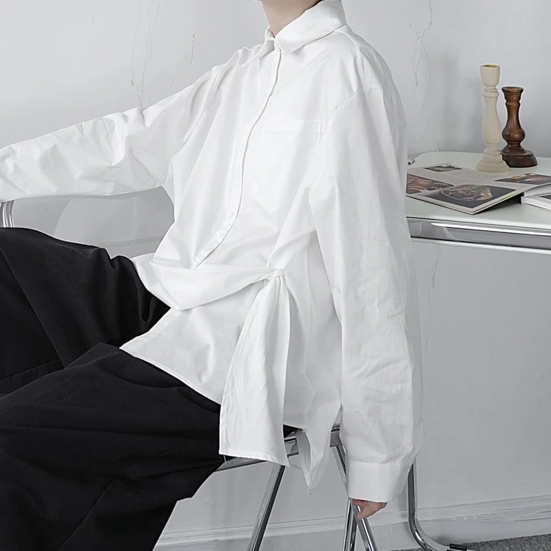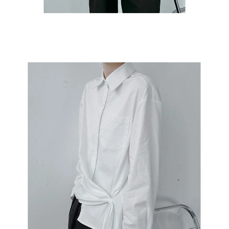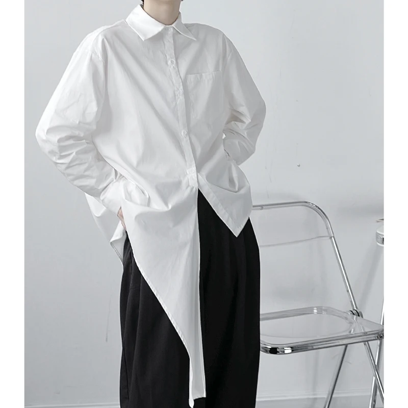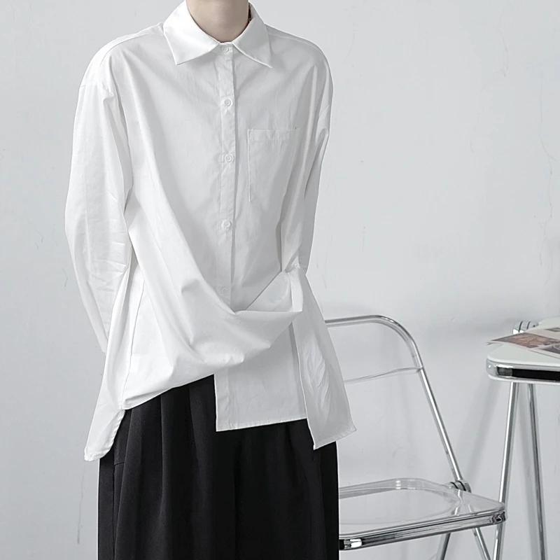 Рубашка с асимметричным подолом для мужчин и женщин, Повседневная модная свободная однотонная уличная одежда в японском и корейском стиле для пар, с длинным рукавом