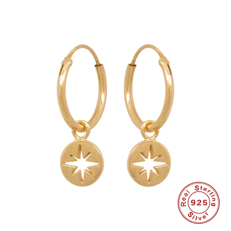 Серьги-кольца женские из серебра 925 пробы, подвеска Звезда Луна