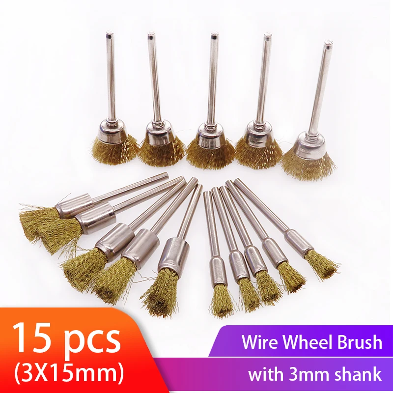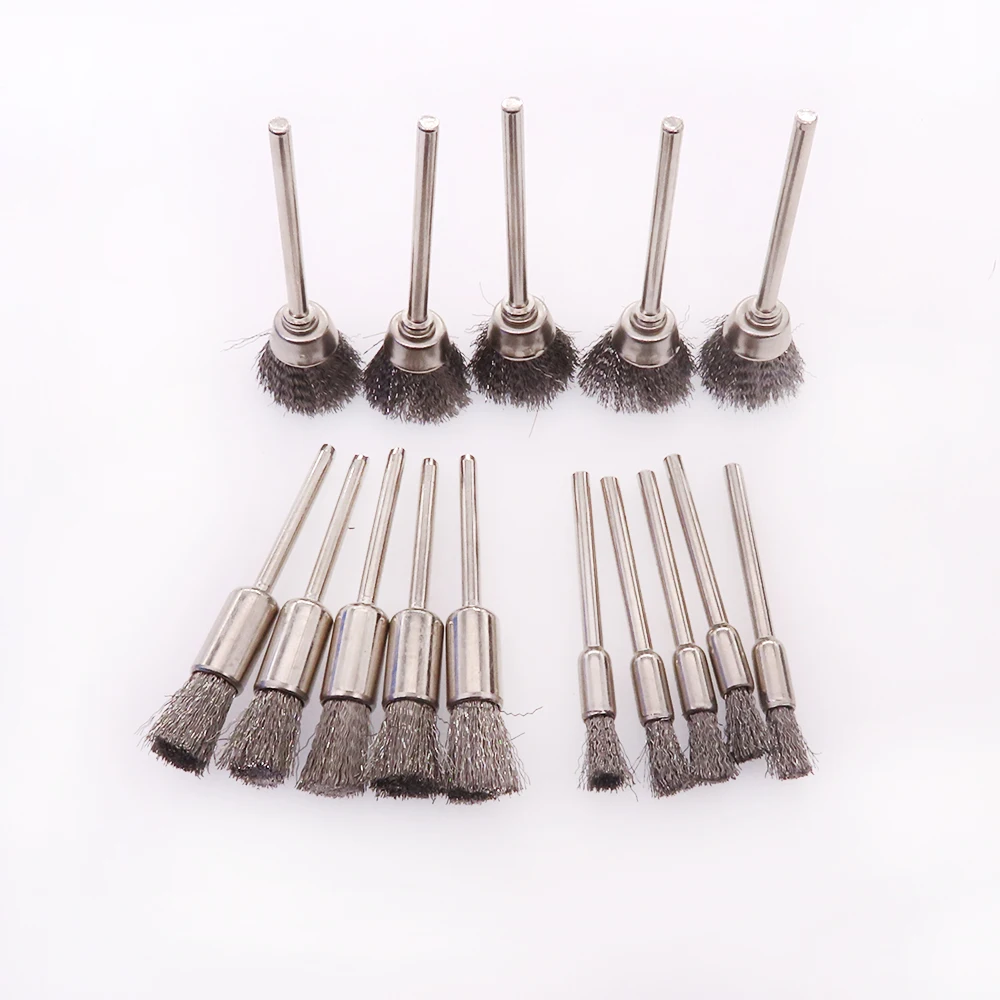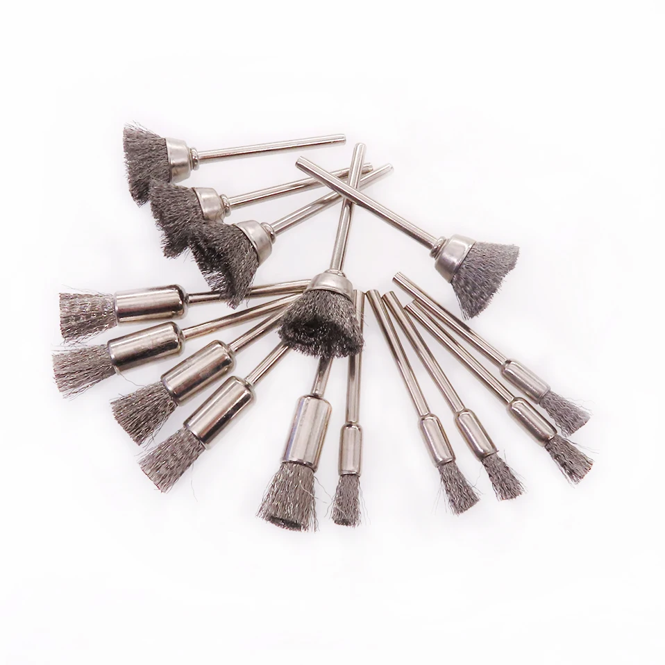 Набор щеток из 15 проволочных стальных для полировки ручек, 18 дюйма (3 мм), хвостовик для аксессуаров, вращающиеся инструменты