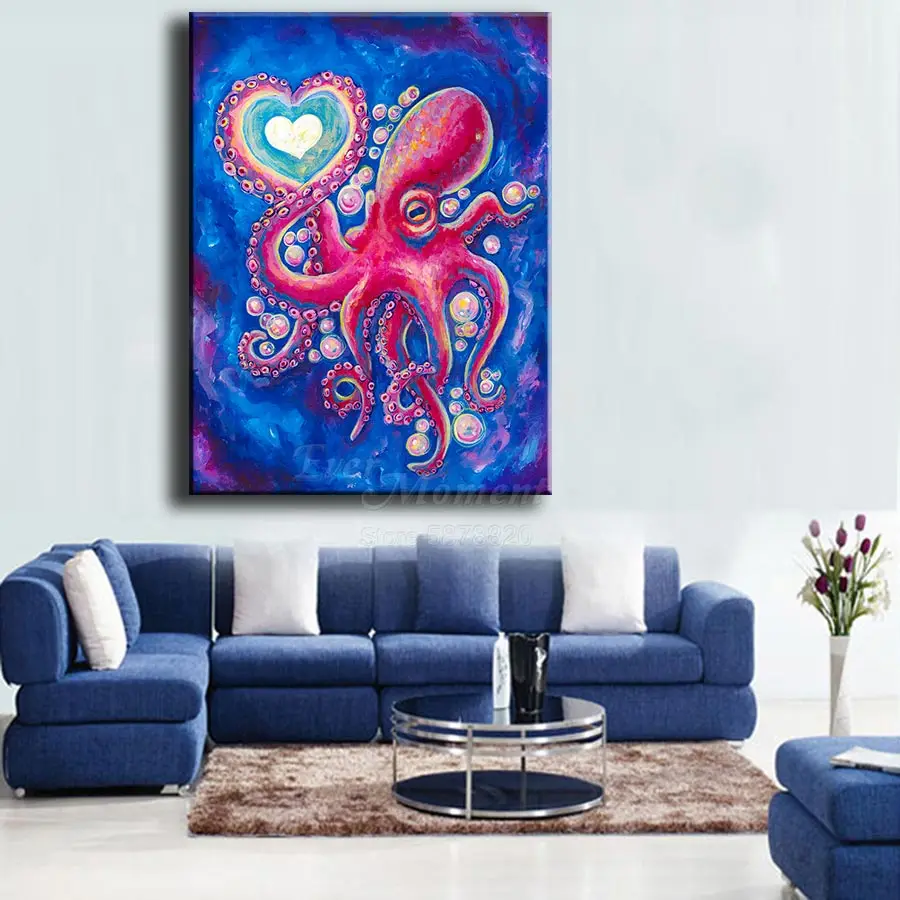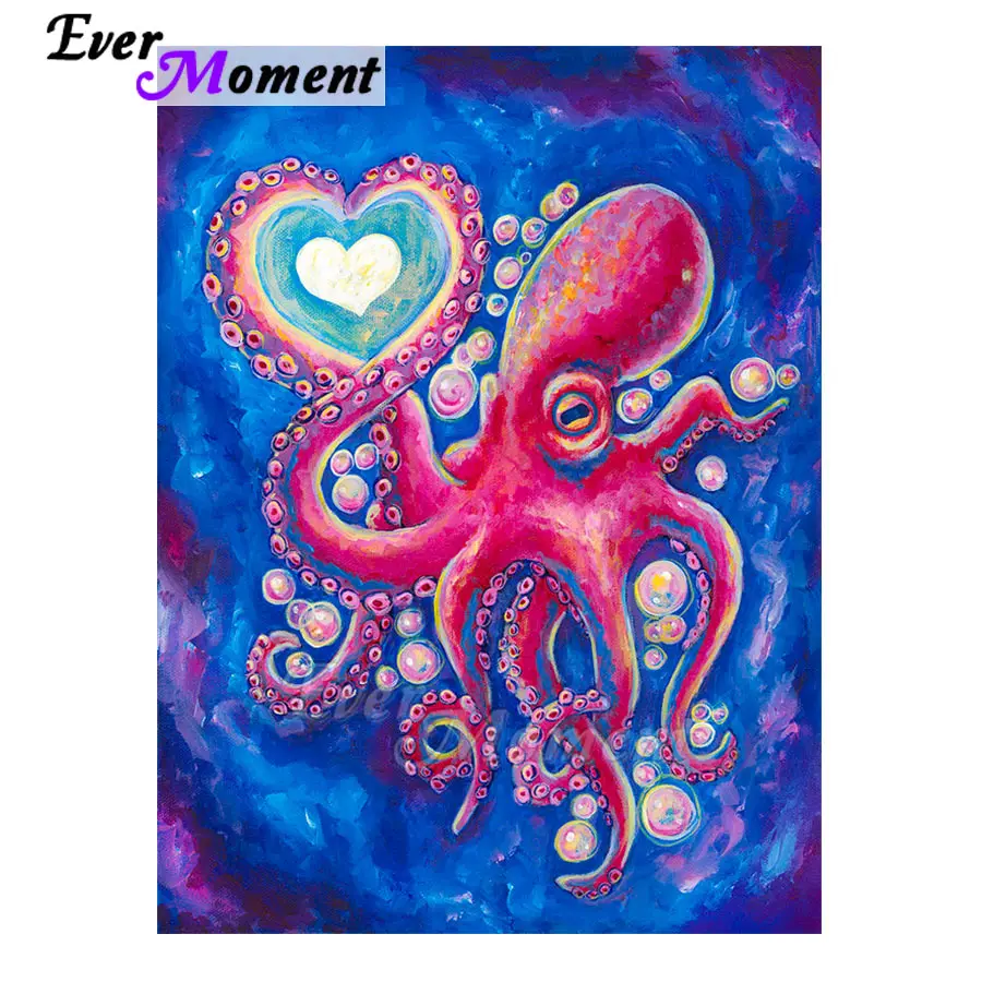 Алмазная живопись Стразы Ever Instant, морское животное, розовый осьминог, мультфильм, в форме сердца, блестящий домашний декор, лучший подарок 5L1179