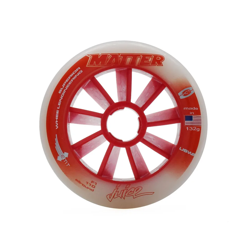 Колесо скоростного катания MATTER JUICE F1 специально разработано для гоночной и марафонской игры; Вы можете выбрать синий/зеленый/розовый/красный цвета; Вы можете выбрать размер 100 мм и 110 мм в соответствии с вашей базой для катания на коньках; Совместим с подшипником 608;