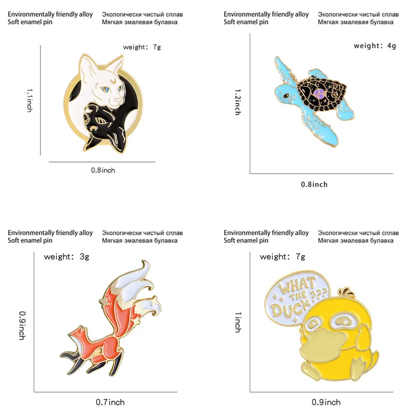 Значки-кошки, эмалевые броши, значки на лацкан для рюкзака, Женская Брошь в виде черепахи, милые эмалевые значки с лисой в стиле аниме для одежды