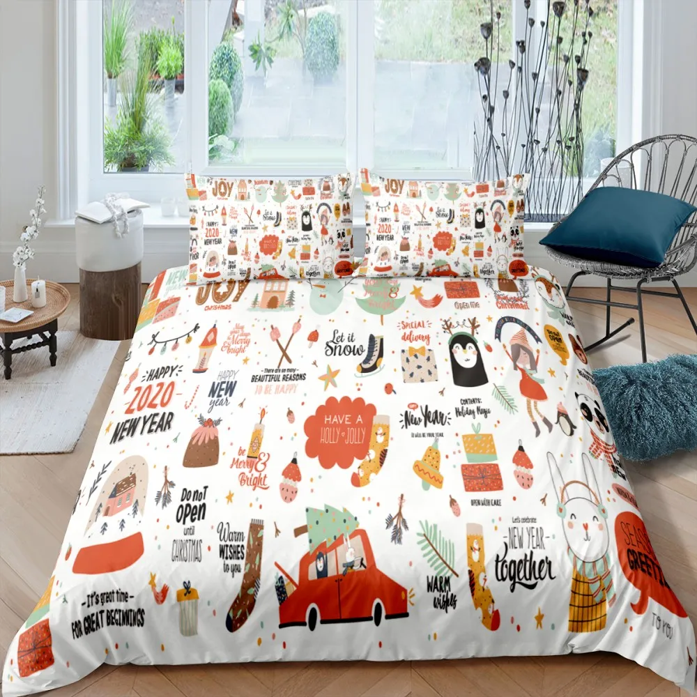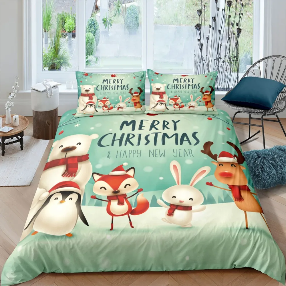 3d Счастливого Рождества Пододеяльник Мультфильм лиса олень постельные наборы Снежинка Рождественская елка печать праздник покрывало мягкий домашний текстиль