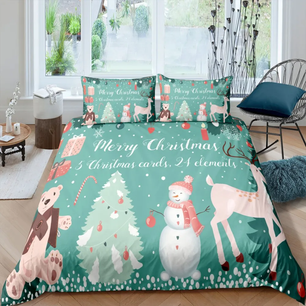 3d Счастливого Рождества Пододеяльник Мультфильм лиса олень постельные принадлежности наборы Снежинка Рождественская елка печать Праздничная кровать мягкий домашний текстиль
