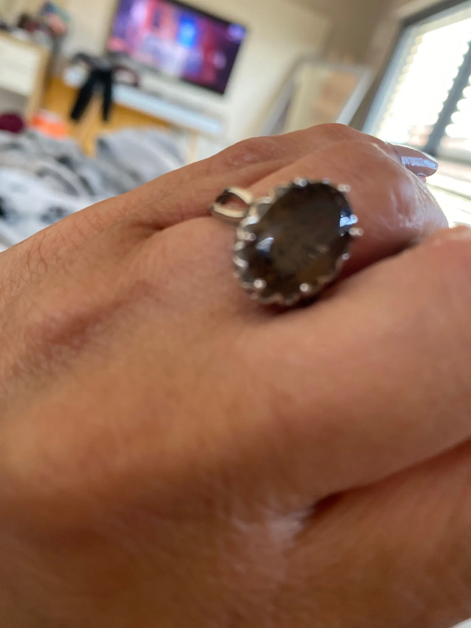 Привлекательный Романтический коктейльное кольцо с 5,7 карат (приблизительно) дымчатый кварц, изготовлены из 925 серебро, в 6 крапановая закрепка. Этот предмет может быть сложены с соответствующим бриллиант обручальное кольцо.