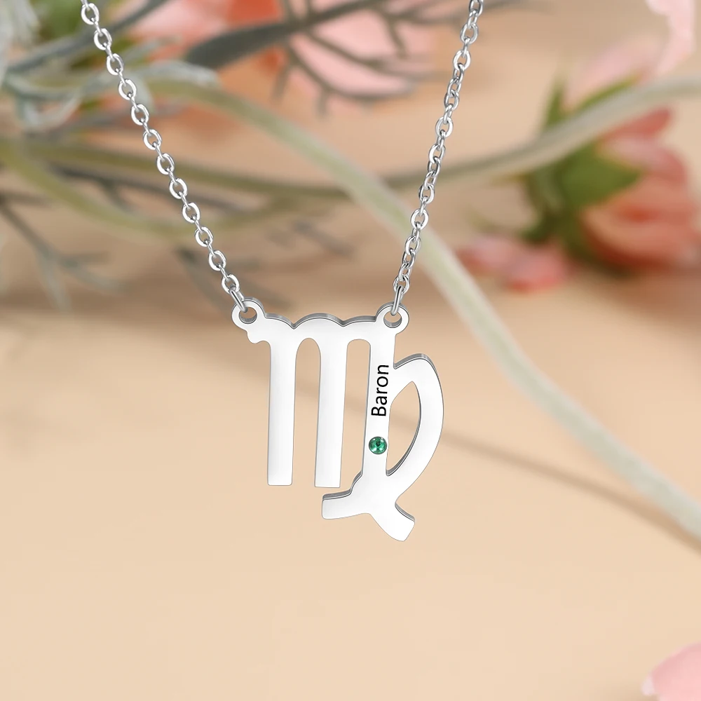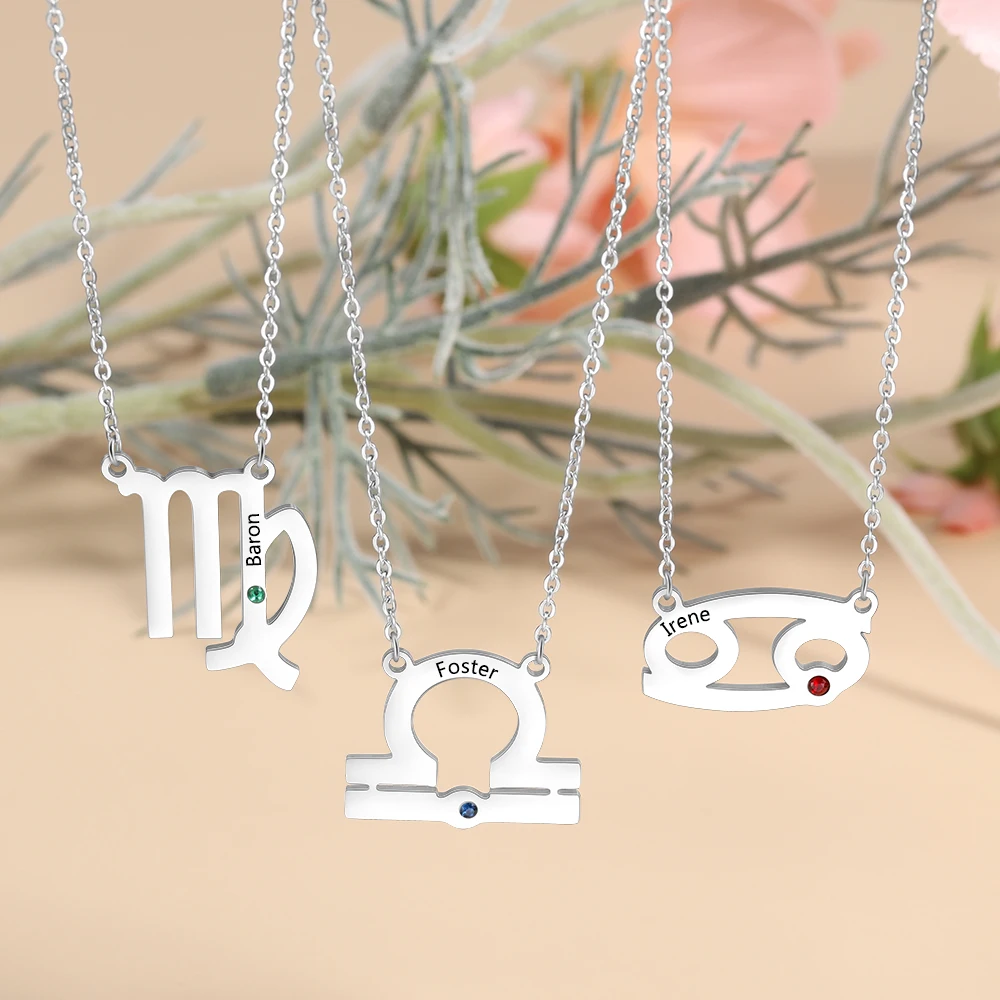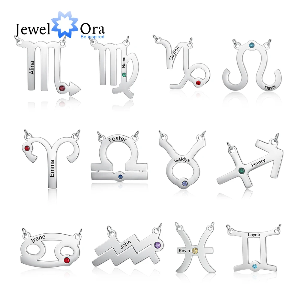 Подвеска из нержавеющей стали, с камнем, 12 подвеска созвездия, дизайнер JewelOra, персонализированное выгравированное название, ожерелье-гороскоп