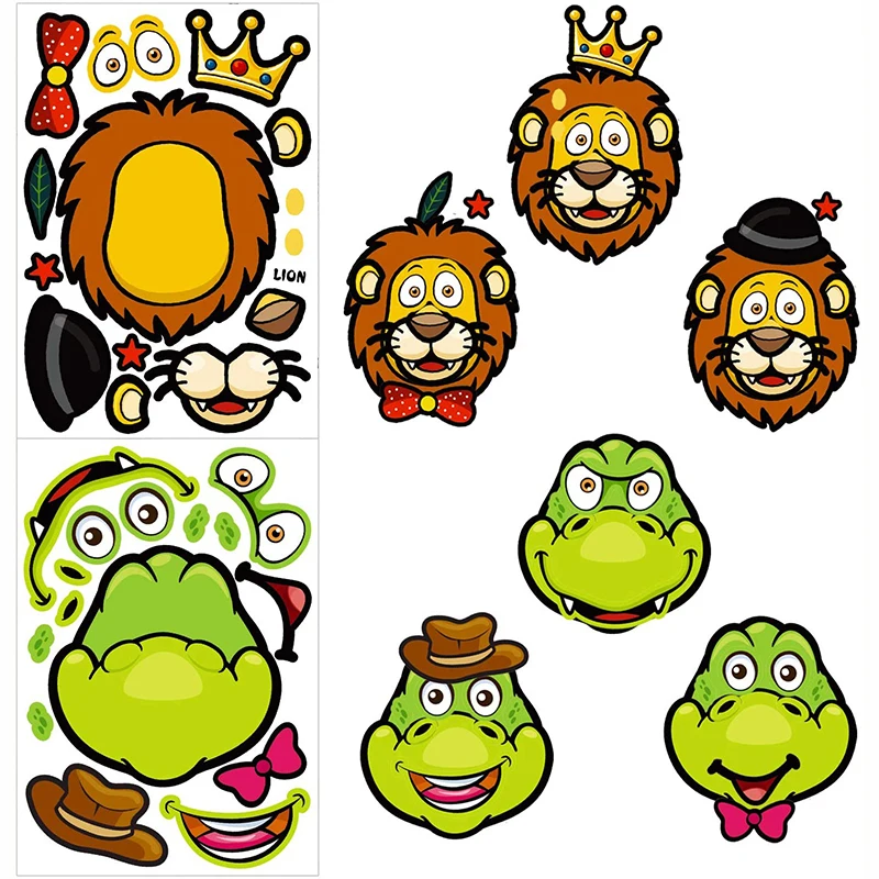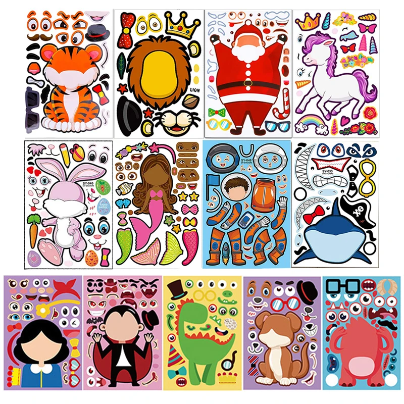 84 листов детских Сделай Сам наклейки сделать свой собственный уход за кожей лица головоломки игры с наклейками с героями мультфильмов принцессы с рисунками животных, забавная игрушка подарок для детей креативные игрушки
