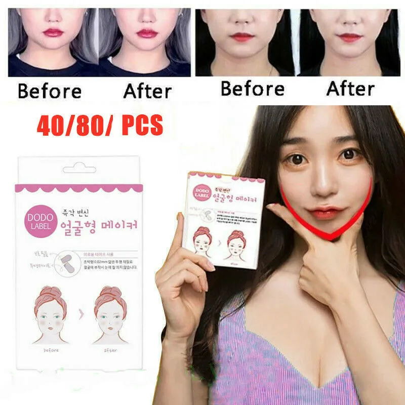 2 коробки = 80 шт., наклейка для подтяжки лица, тонкий артефакт, невидимая наклейка, медицинская лента для подтяжки подбородка, инструменты для подтяжки лица, пояс для похудения
