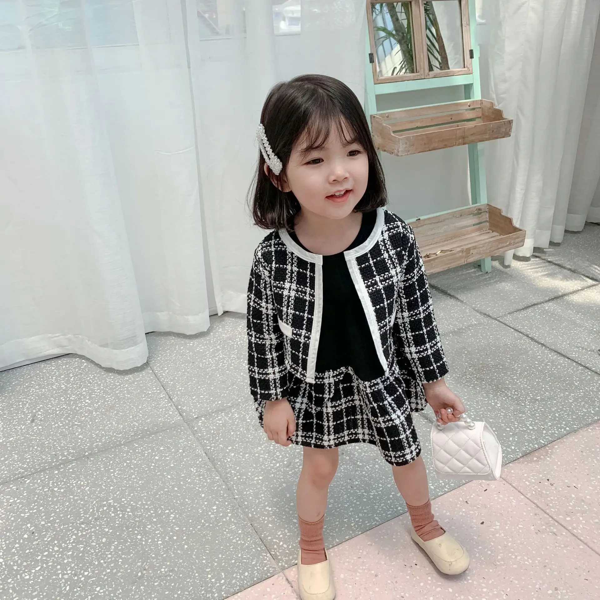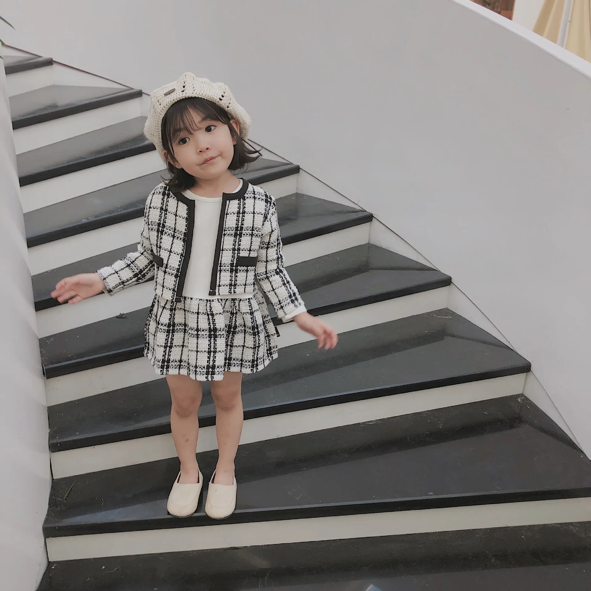 Детский твидовый костюм для девочек, осенний костюм из двух предмет...