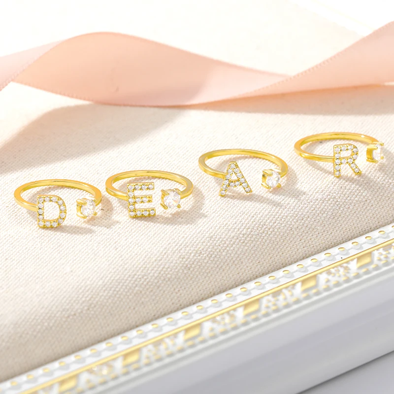 Кольца женские регулируемые, с золотым цирконием, 2021, A-Z, кольца...