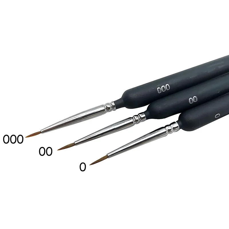 Все кисти оснащены защитными колпачками.3 размера: 9 кистей размером 0, 00, 000Отличный подарок для детей, друзей, начинающих, художников или для любого.Кистями можно обрабатывать как акриловыми, так и эмалевыми красками.