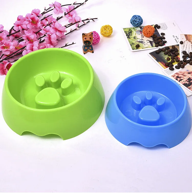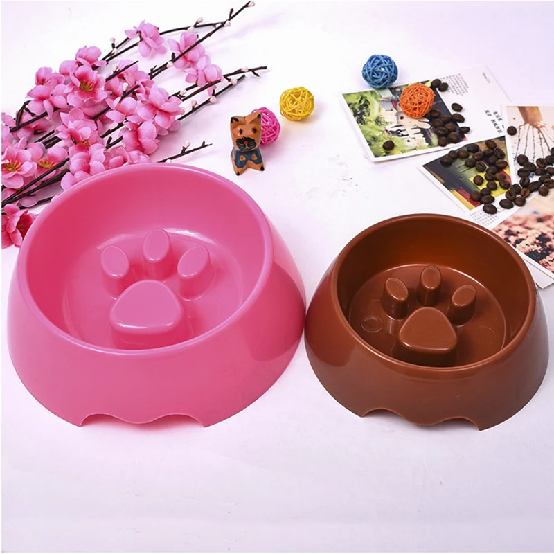 Коричневая, синяя, зеленая, розовая миска для собак с подставкой, медленная кормушка для домашних животных, миски с защитой от застревания, пластиковые аксессуары для собак, маленький и большой размер