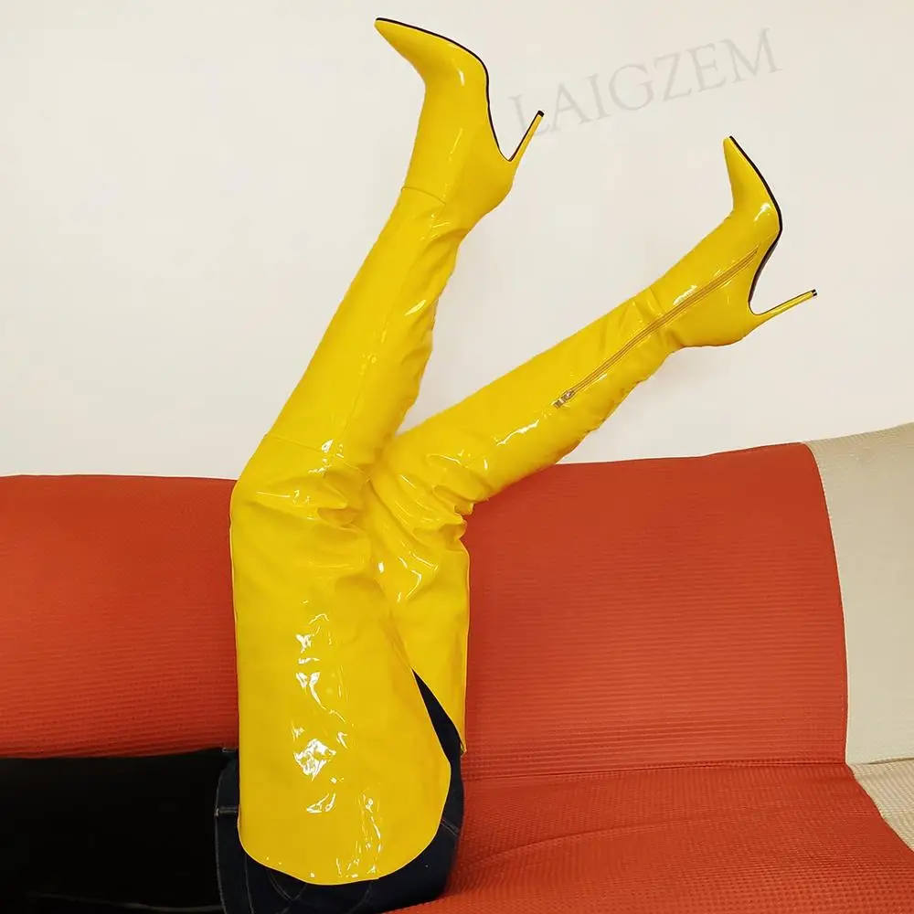 LAIGZEMсексуальные женские сапоги до бедра, высокие сапоги на молни...
