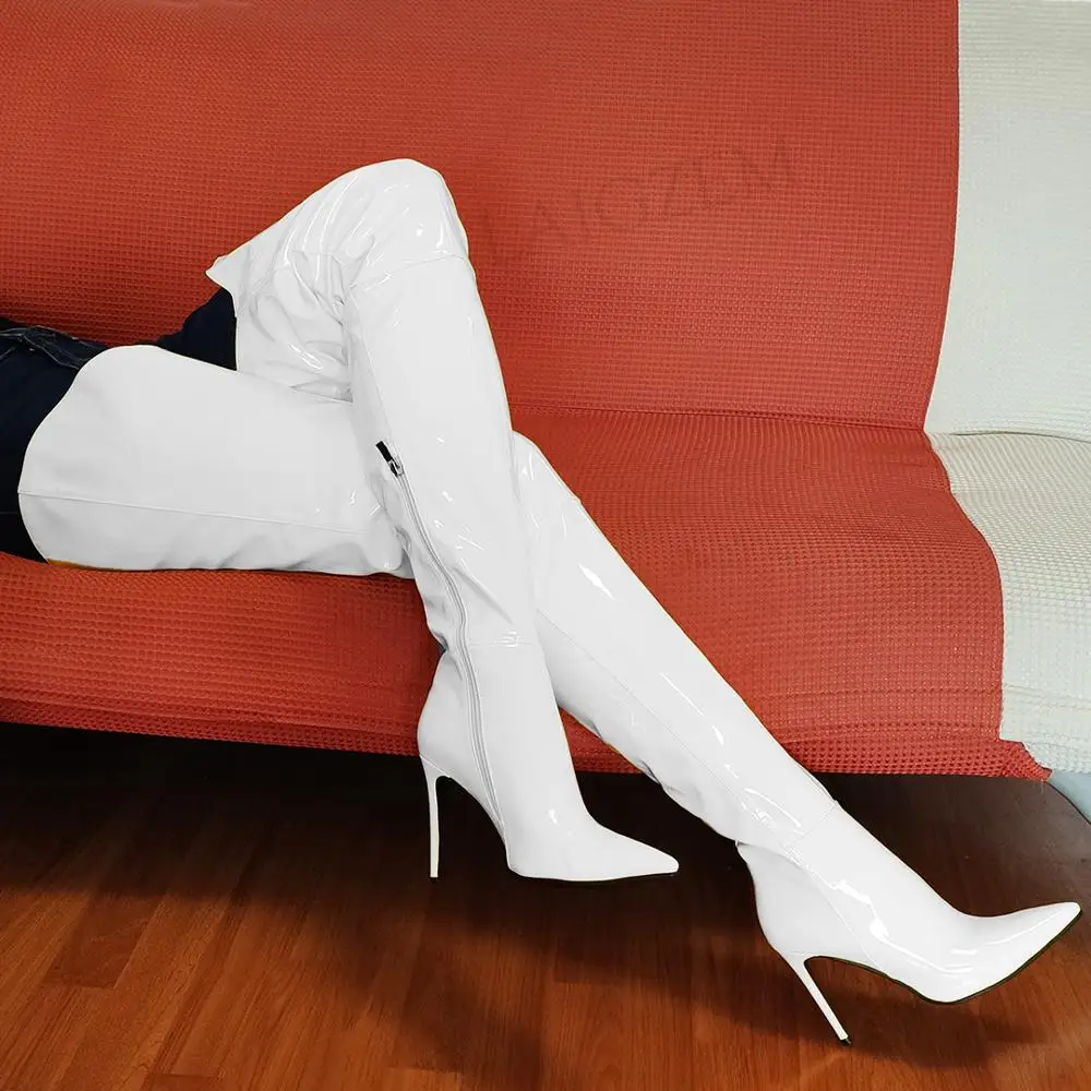 LAIGZEMженские сапоги до бедра; Блестящие сапоги до середины голени...