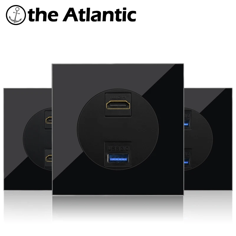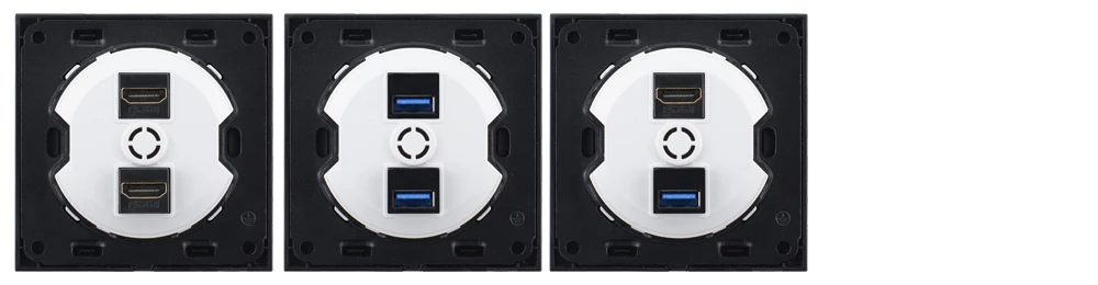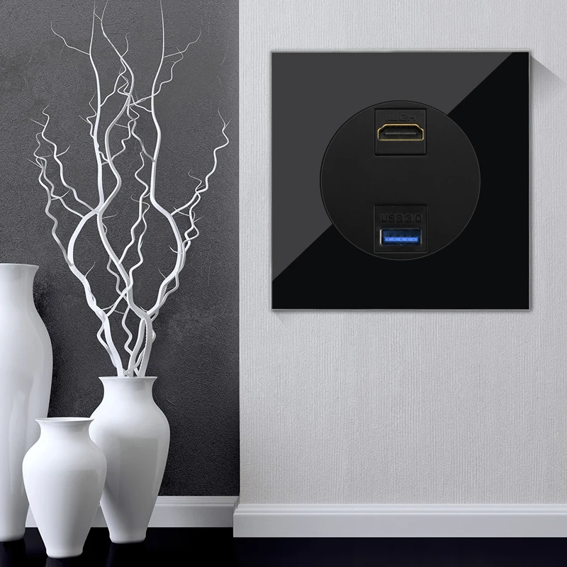 HDMI и USB HDMI USB 3,0 гнездовой разъем для передачи данных, настенная розетка для компьютера, ПК, телевизора, телевизора, черная стеклянная рамка