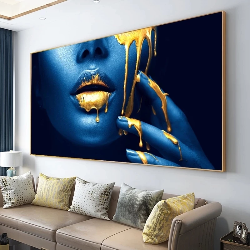 Африканское женское лицо сексуальные Золотые губы холст настенные к...