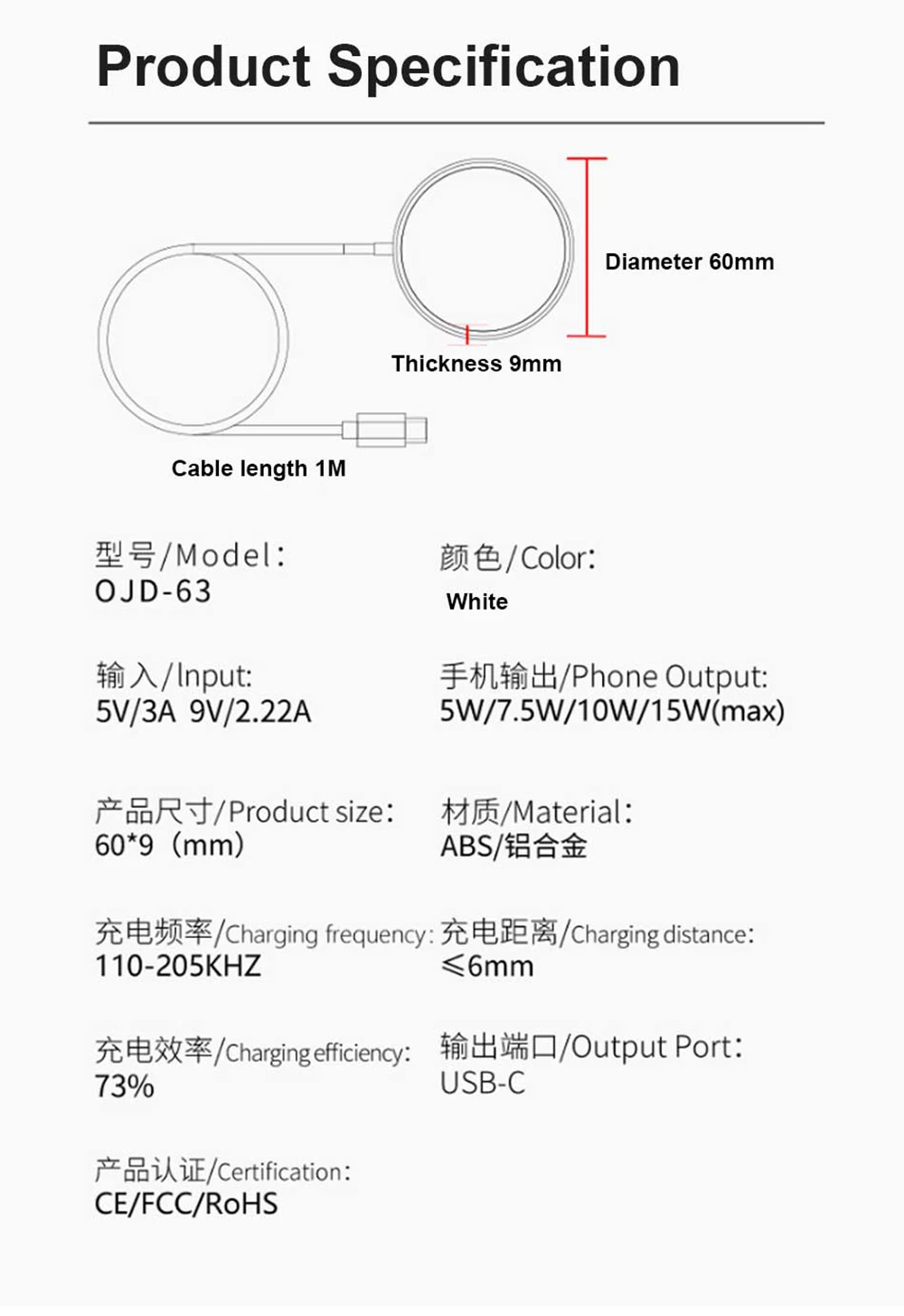 Магнитное Беспроводное зарядное устройство USB Type-C, 15 Вт